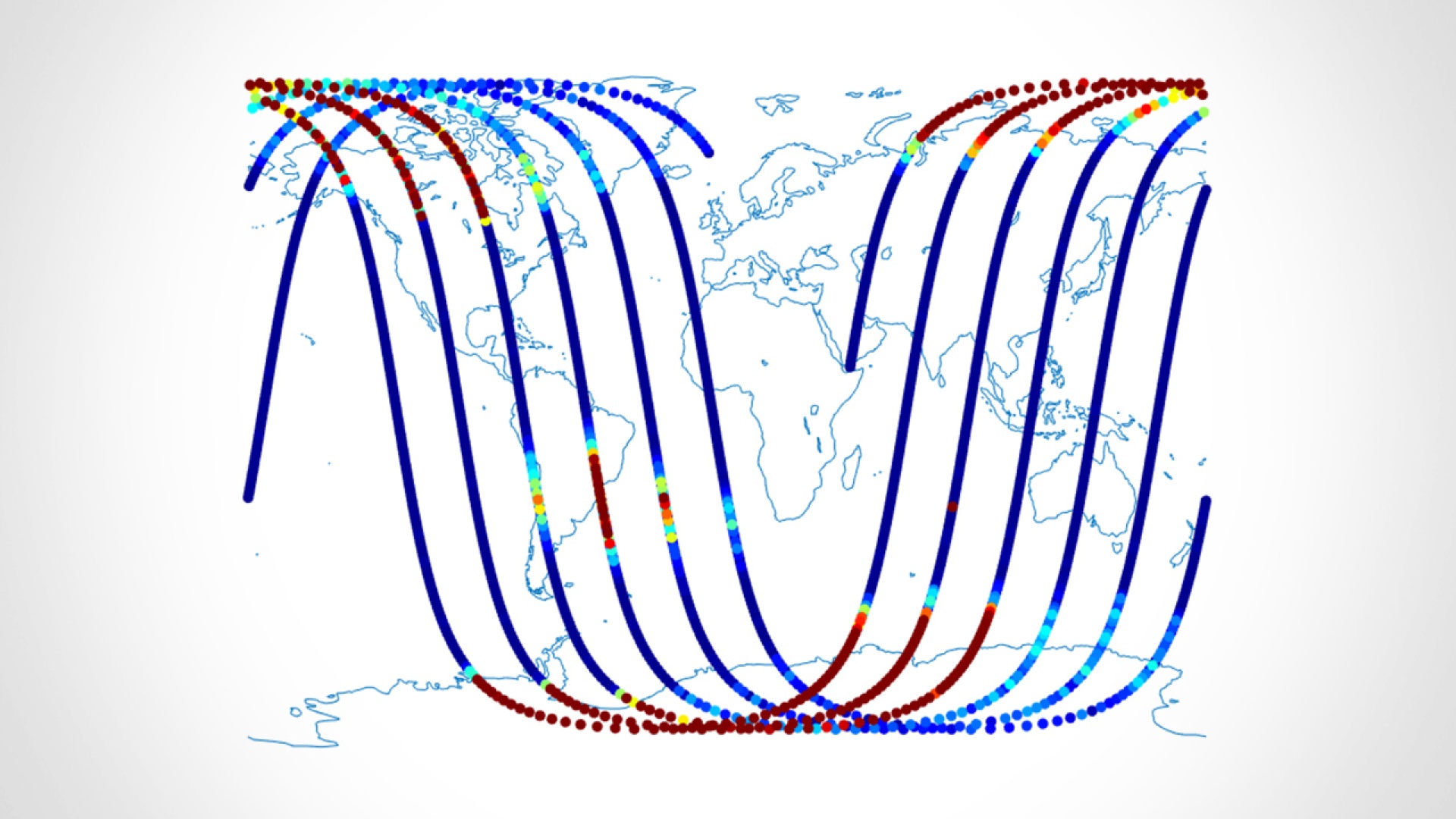 Lisäksi mittauksissa näkyy hyvin ns. Etelä-Atlantin anomalia, keskimääräistä voimakkaampi säteilyalue lähiavaruudessa, joka osuu juuri eteläisen Atlantin päälle.