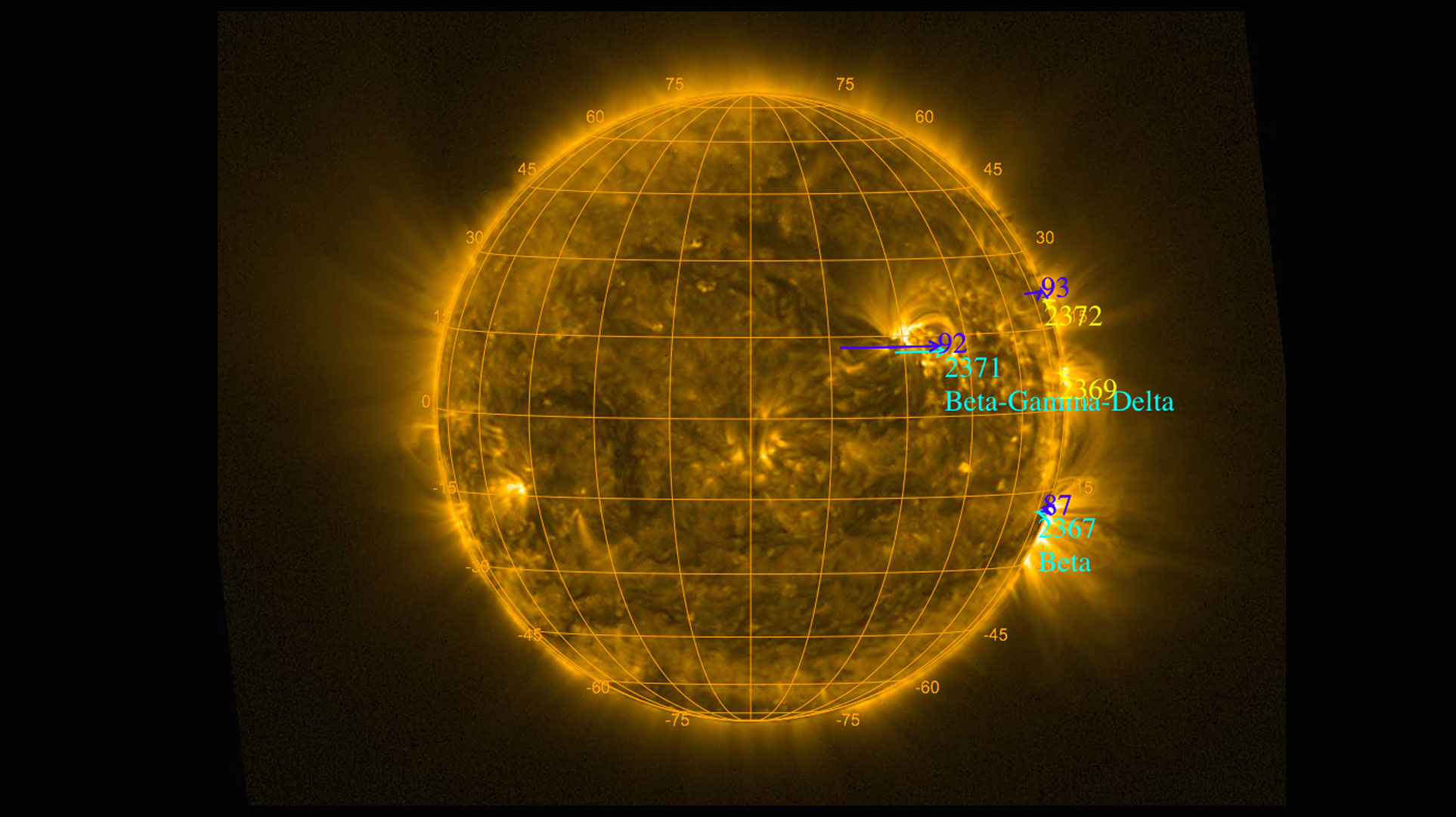 Viimeisen vuorokauden aikana Auringossa on havainnut vain muutamia heikkoja C-luokan purkauksia, eikä Auringon koronan läpi ole päässyt yhtään purkausta. Edelleen aktiivinen pilkkuryhmä AR2371 saattaa kuitenkin saada aikaa purkauksia, jotka vaikuttavat maapalloon. Tuoreita kuvia Auringosta on mm. Proba2 -satelliitin sivuilla.