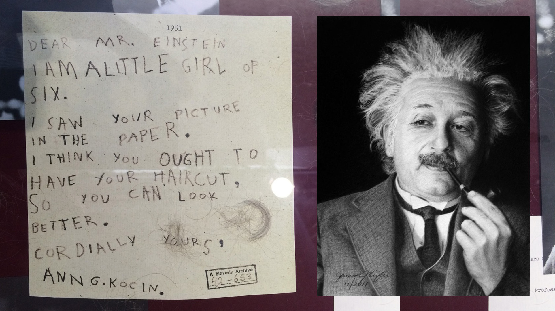 Tämä sai amerikkalaisen, kuusivuotiaan Ann-tytön reagoimaan vuonna 1951 ja lähettämään tuolloin Princetonissa asuneelle tutkijalle kirjeen. Ohessa olevassa kirjeessä hän toteaa, nähneensä Einsteinin kuvan ja että hänen pitäisi käydä parturissa. "Näyttäisitte siten paremmalta", sanoo Ann kirjeessään.