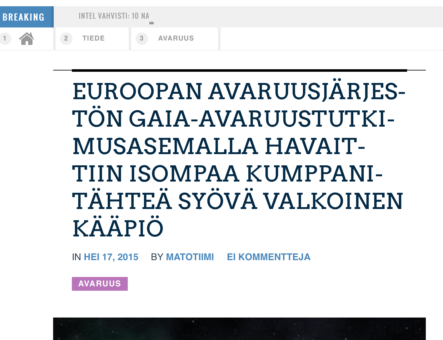 Verkkojulkaisu Mato78 kertoo kiitettävän usein ja hyvin käännetyin artikkelein avaruustutkimuksesta, mutta varsin usein termit heittävät häränpyllyä. Esimerkiksi jutussa Euroopan avaruusjärjestön Gaia-avaruustutkimusasemalla havaittiin isompaa kumppaniaan syövä valkoinen kääpiö jo otsikon sana "avaruustutkimusasema" herättää pientä hihitystä.