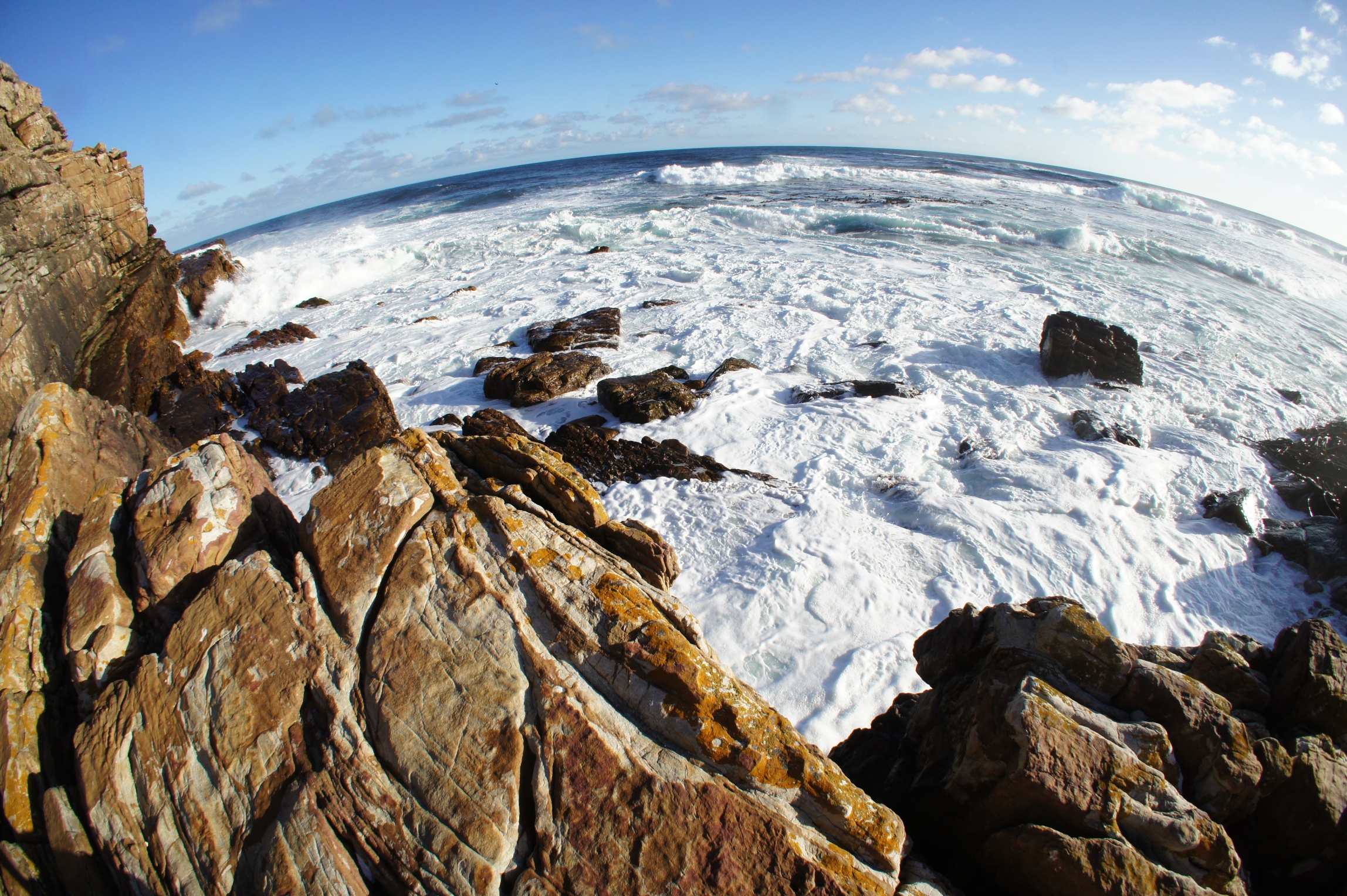 Yllä olevassa kuvassa on kuitenkin näkymä varsin puhtaalle merelle Etelä-Afrikassa. Siinä on Kapkaupungin eteläpuolella oleva Cape Point, mistä avautuu laaja ulappa, jonka vastaranta on Etelämanner. Paikassa eteläinen Atlantti ja Intian valtameri kohtaavat, ja vaikka sää olisi lämmin ja mukava, on haita vilisevä, rikas meri aina varsin kylmä.