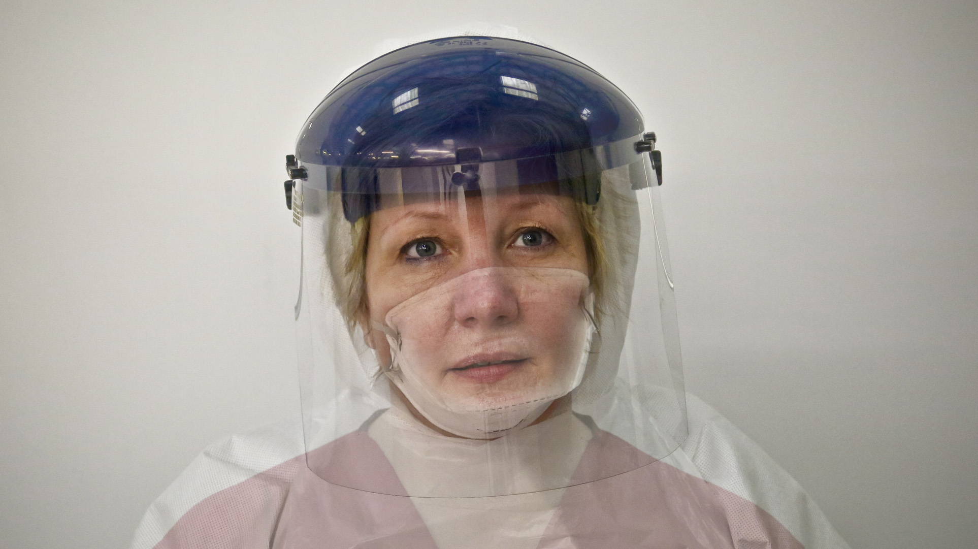 Otsikkokuvassa on sairaanhoitaja Donna Wood suojapuvussaan. Kyseessä on sairastuneen Pauline Cafferkeyn työtoveri. Kuva: NHS