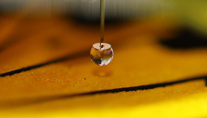 ”Selvitimme pinnan vedenhylkivyyttä vesipisaroiden avulla niin, että mittasimme erittäin pieniä, nanonewtonien suuruisia, voimia pisaran koskettaessa pintaa ja irrotessa siltä. Teimme mittauksia näytepinnoilla millimetrin sadasosan välein, ja pystyimme näin laatimaan pinnan vedenhylkivyydestä kaksiulotteisen kuvan – tavallaan kartan sen kastumisominaisuuksista”, kertoo Aalto-yliopiston professori Quan Zhou.