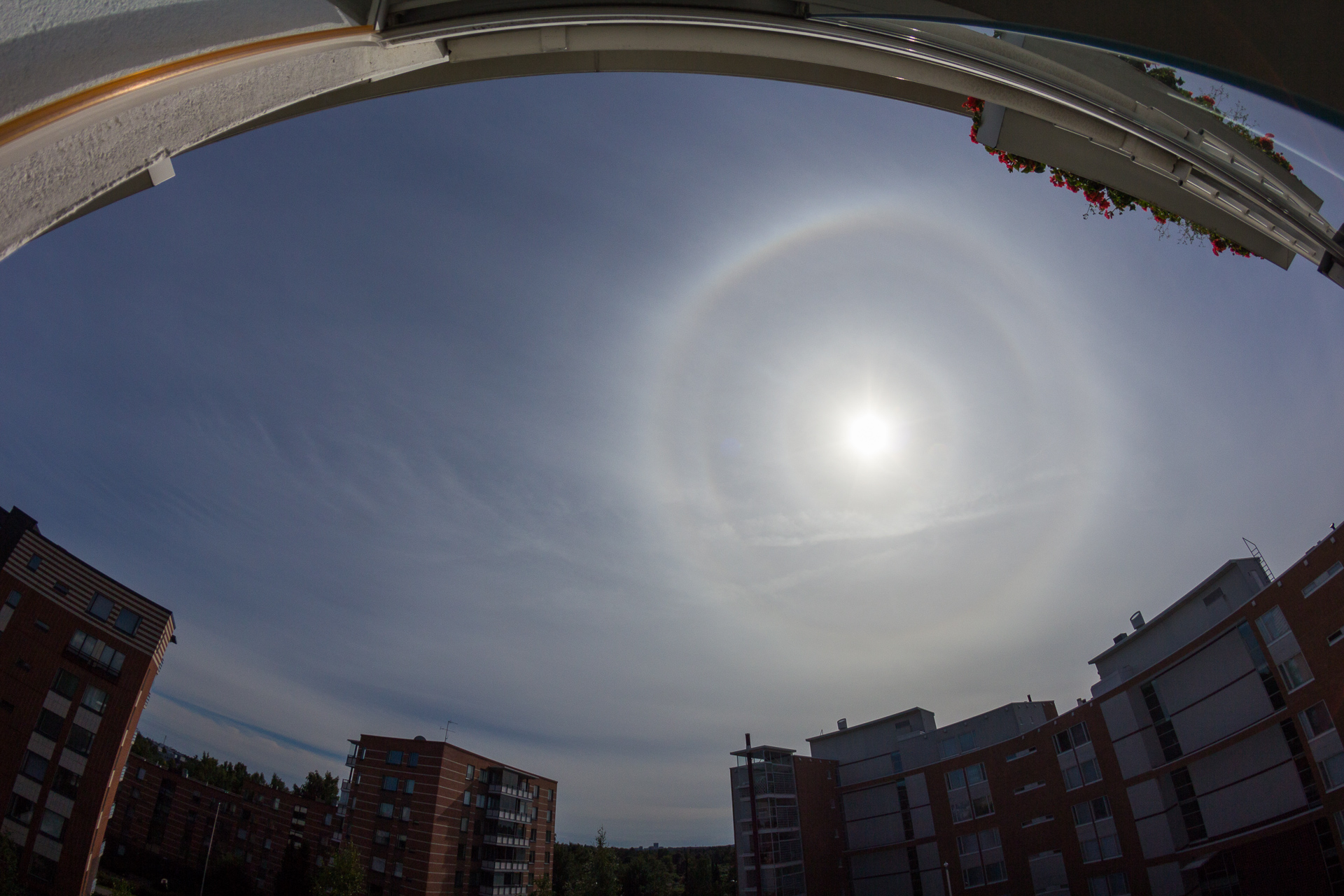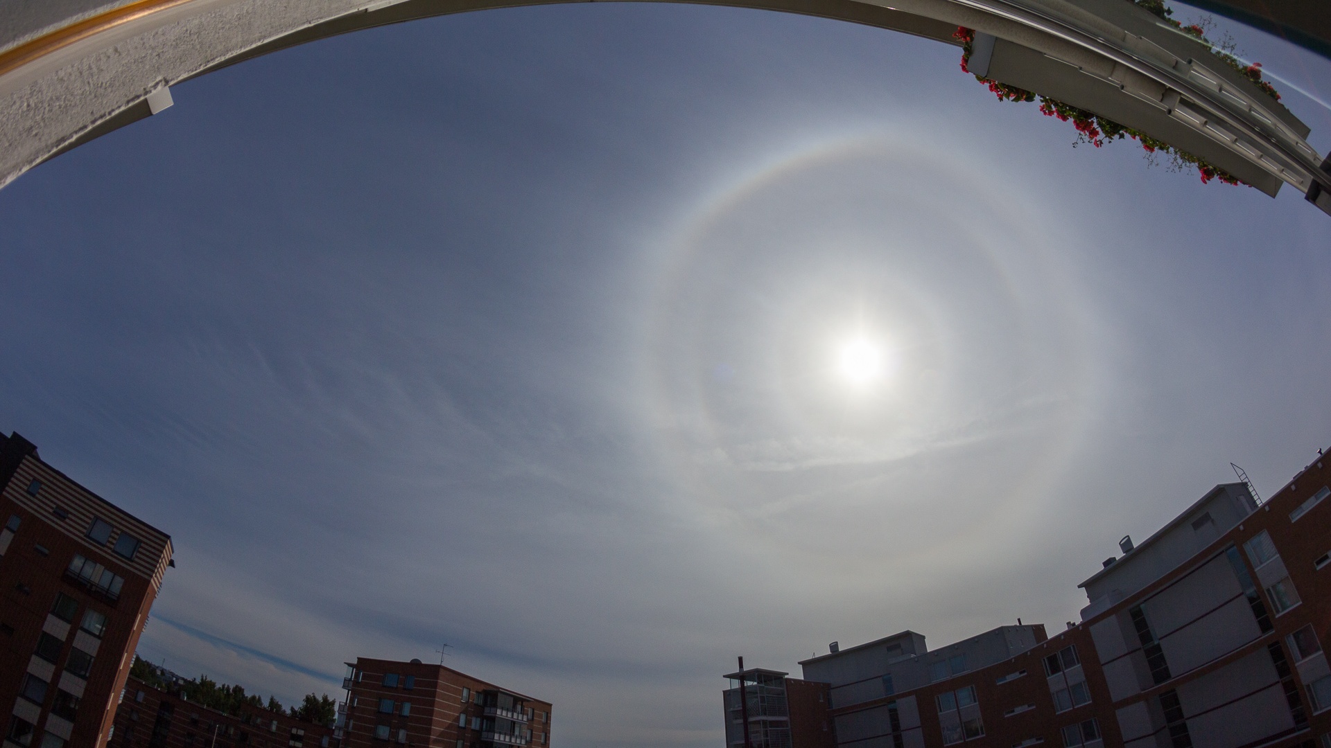 Tänään iltapäivällä näkyi ainakin pääkaupunkiseudun taivaalla harvinaisen hienoja pyramidihaloja, eli omalaatuisilta ympyräsateenkaarilta näyttäviä ilmiöitä, joilla ei kuitenkaan ole sateenkaarten kanssa juurikaan mitään tekemistä.