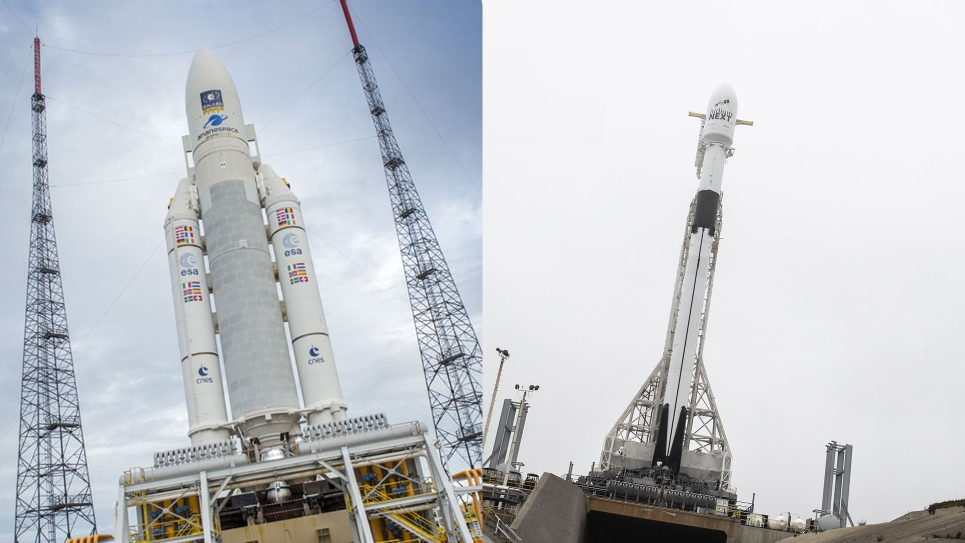 SpaceX -yhtiön Falcon 9 on olemukseltaan aivan erilainen kuin Ariane 5, sillä siinä missä Ariane 5 oli 1990-luvulla yksinkertaisin ja uudenaikaisin raketti, on Falcon 9 sitä nyt. Falcon 9 on hieman pienempi, mutta se on osittain uudelleenkäytettävä, sillä raketin ensimmäinen vaihe palaa takaisin alas ja voi lentää uudelleen.