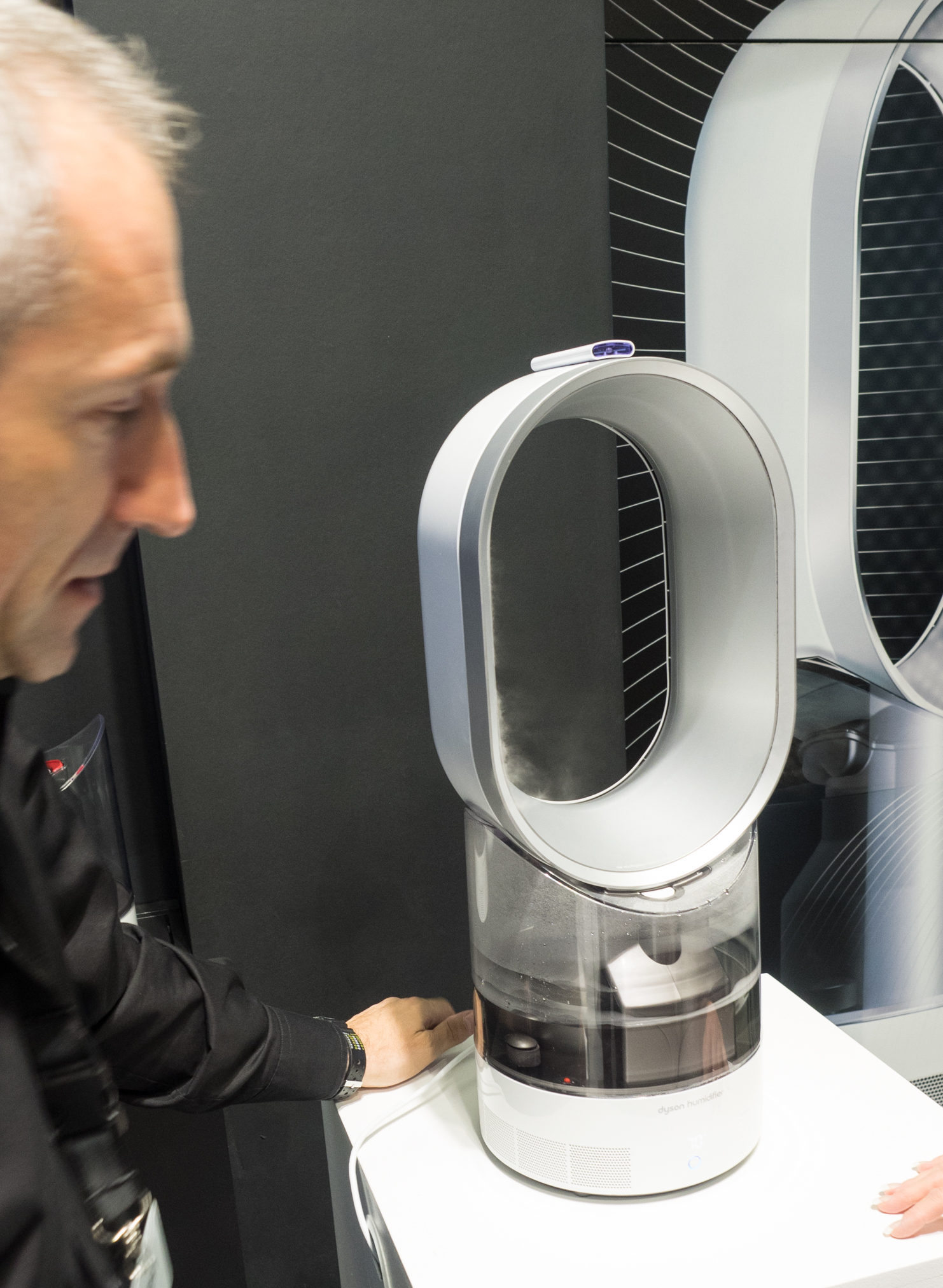 Dysonin ”potkurittomasta” tuulettimesta on jatkojalostettu nyt ilmankostutin. Automaattisen kostaudensäädön lisäksi laitteesta puhallettavan kosteuden luvataan olevan täysin vapaa mikrobeista.