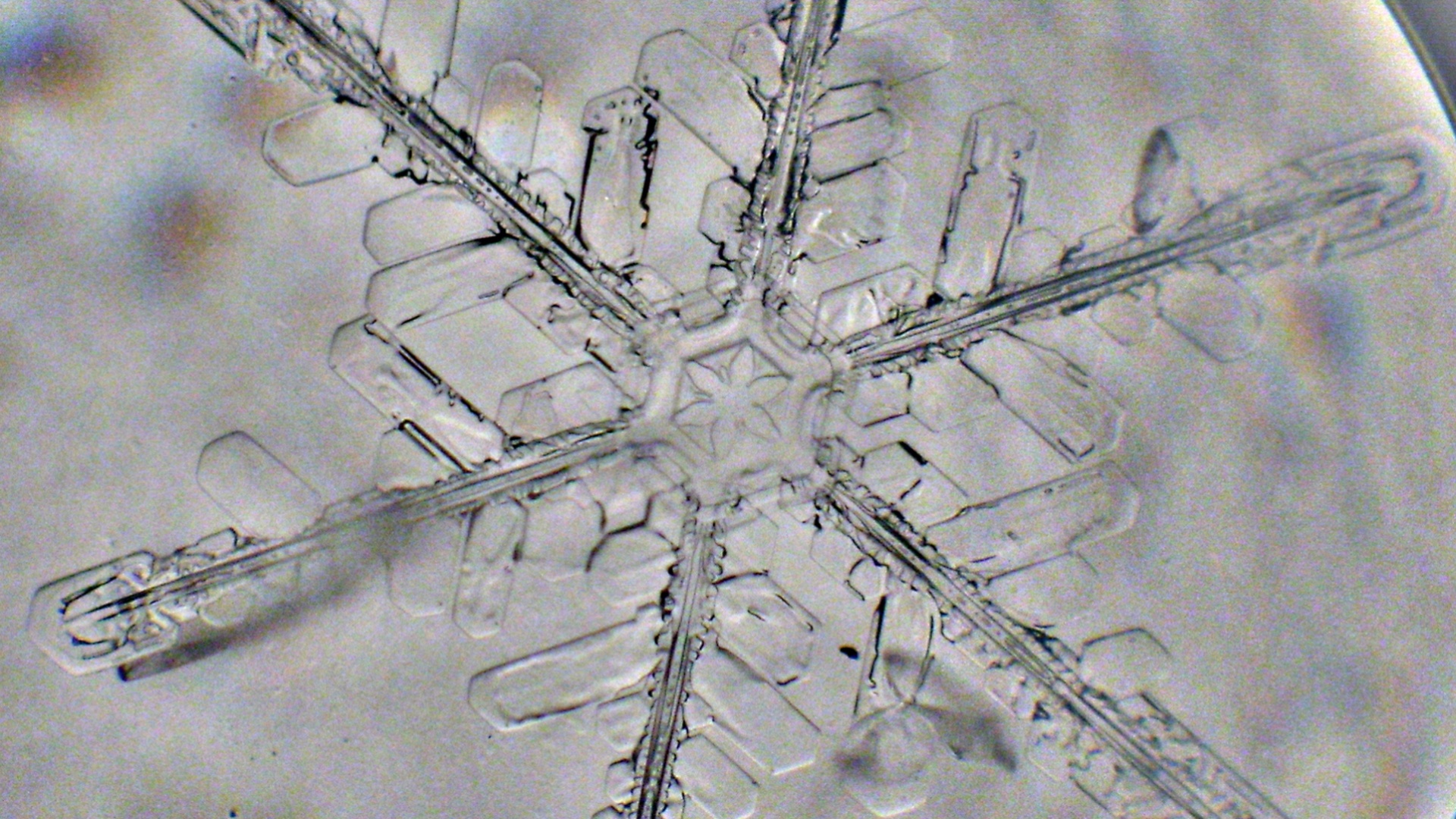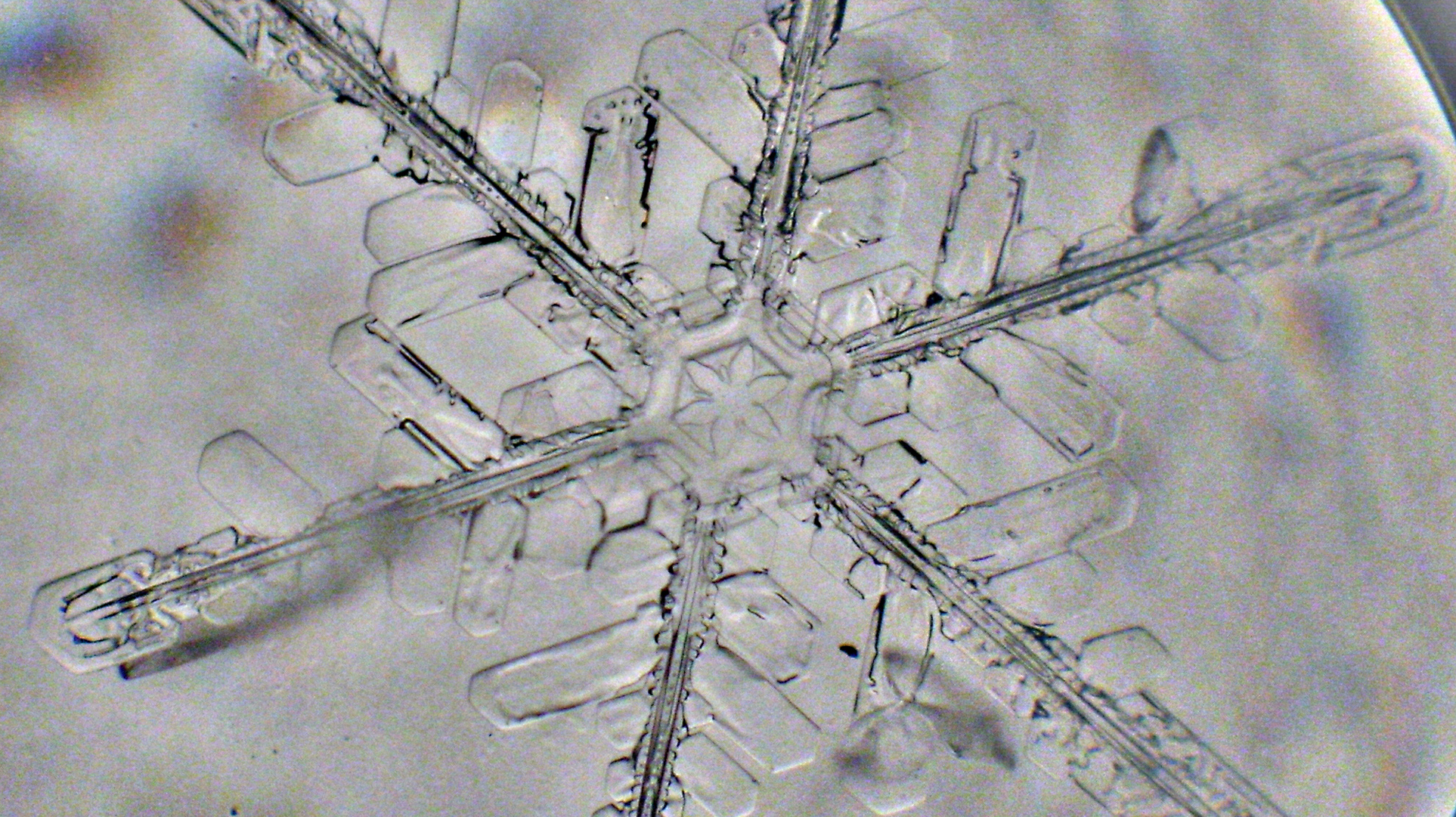 Se, että lumihiutaleet ovat kuusisakaraisia, ei liene yllätys kenellekään. Mutta tämän näkeminen mikroskoopilla on silti yllättävää: vesi on oikeasti jäätynyt tähän omalaatuiseen muotoon ja sakaroissa on kiinni pieniä jäälevyjä.