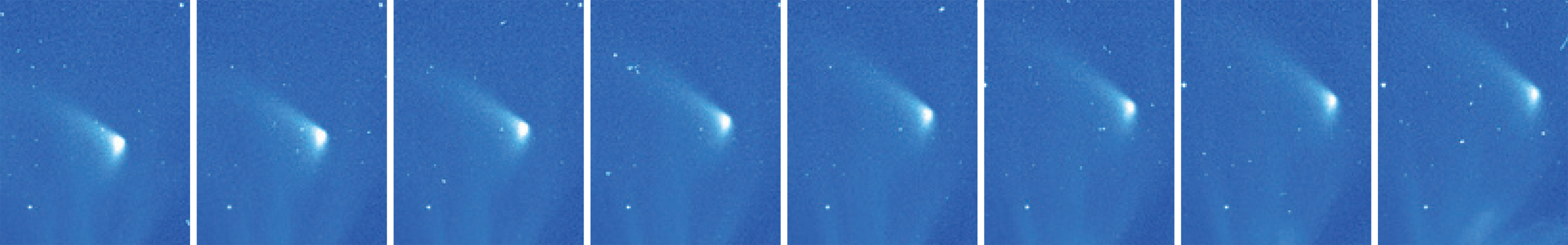 Komeetta liikkuu selvästi tähtien suhteen – kuten odottaa sopiikin – ja samalla se näyttää himmenevän. Pyrstöt pysyvät jokseenkin ennallaan, mutta valkoisena valoläikkänä näkyvä komeetan pää hiipuu hitaasti.