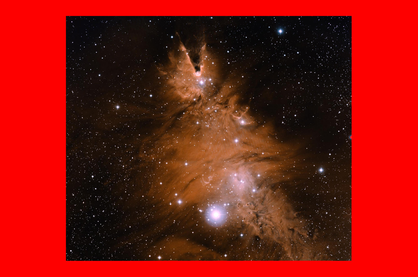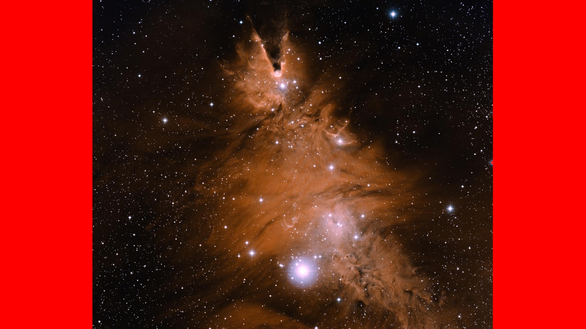 Eilinen joulupuulinja jatkuu, mutta tällä kertaa esittelyssä on vähän isompi versio. Yksisarvisen tähdistön suunnassa kimaltelee Joulukuusijoukko. Sen alapuolella ("kuusenjalan" kohdalla) on kirkas tähti S Monocerotis, joka on muuttuja eli kirkkaudeltaan muuttuva tähti. Joulukuusen "latvatähtenä" on puolestaan Kartiosumu, joka muodostuu tummasta, pitkulaisesta pölypilvestä.