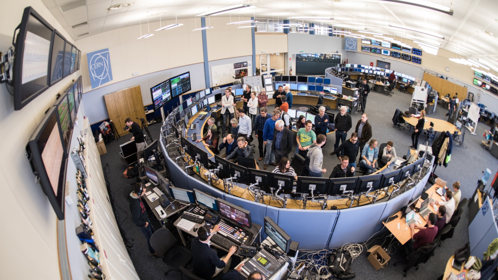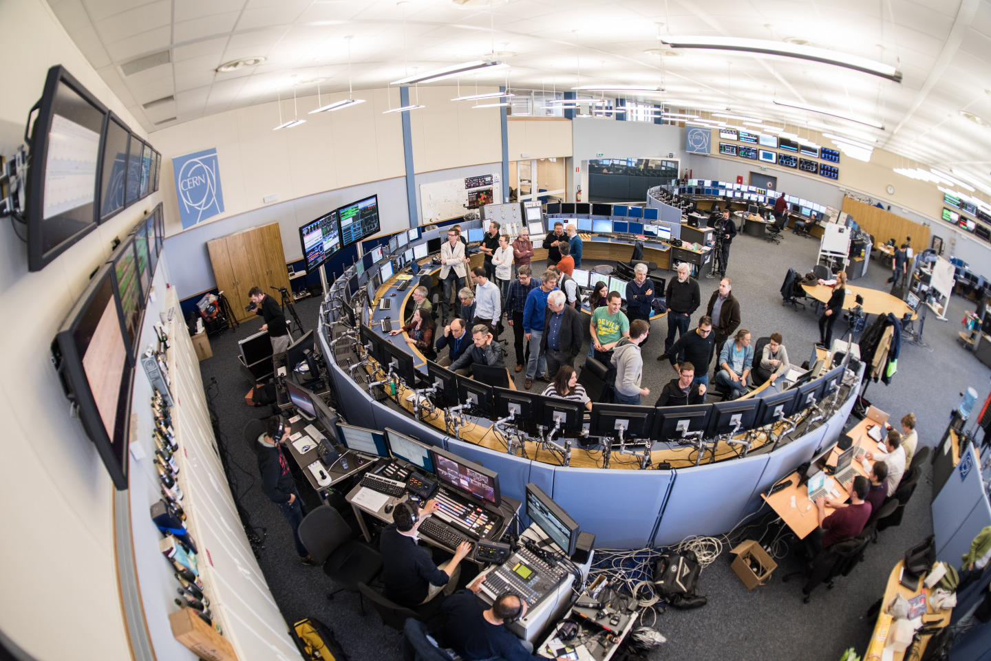 Otsikkokuvassa on LHC:n päävalvomo sunnuntaina kiihdyttimen ollessa jälleen toiminnassa (kuva: CERN).