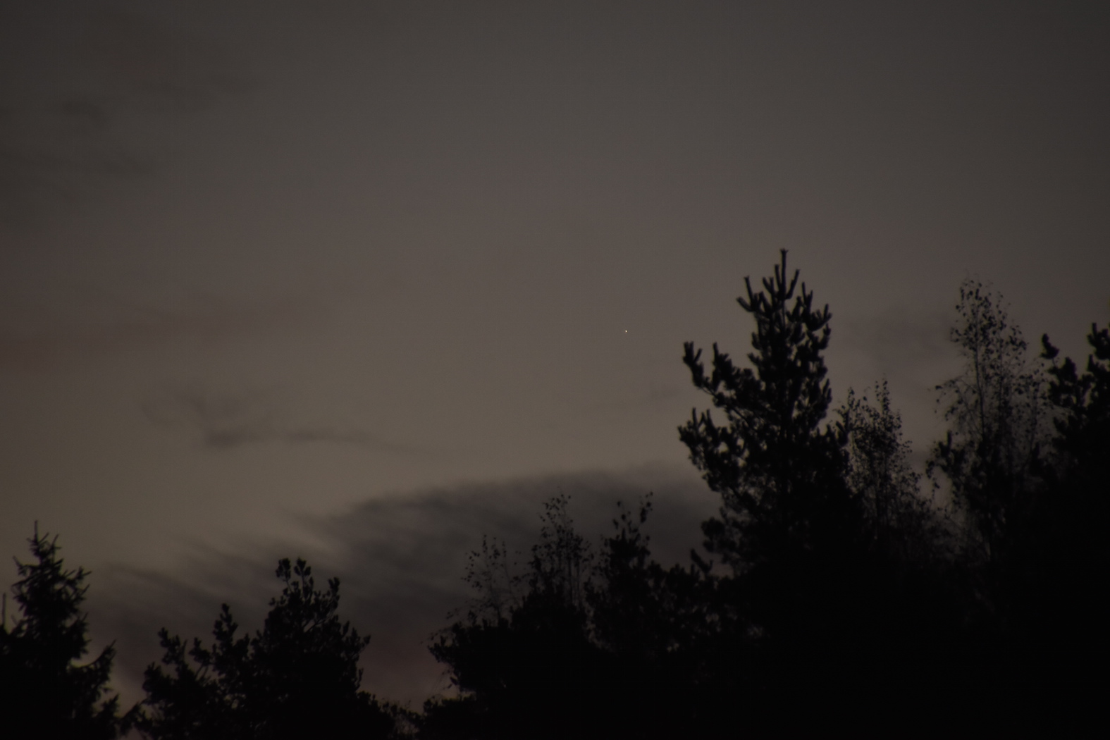 Etäisyyttä on nyt kulmamitoissa 18 astetta. Koska Aurinko ja kaikki muutkin taivaankappaleet nousevat Suomen leveysasteilta melko loivasti, Merkurius ei näy meiltä koskaan pimeällä taivaalla. Nytkin se ehätti vaivoin puidenlatvojen yläpuolelle ennen kuin lähestyvä aamunkoitto valaisi taivaan niin, ettei planeetta enää erotu.