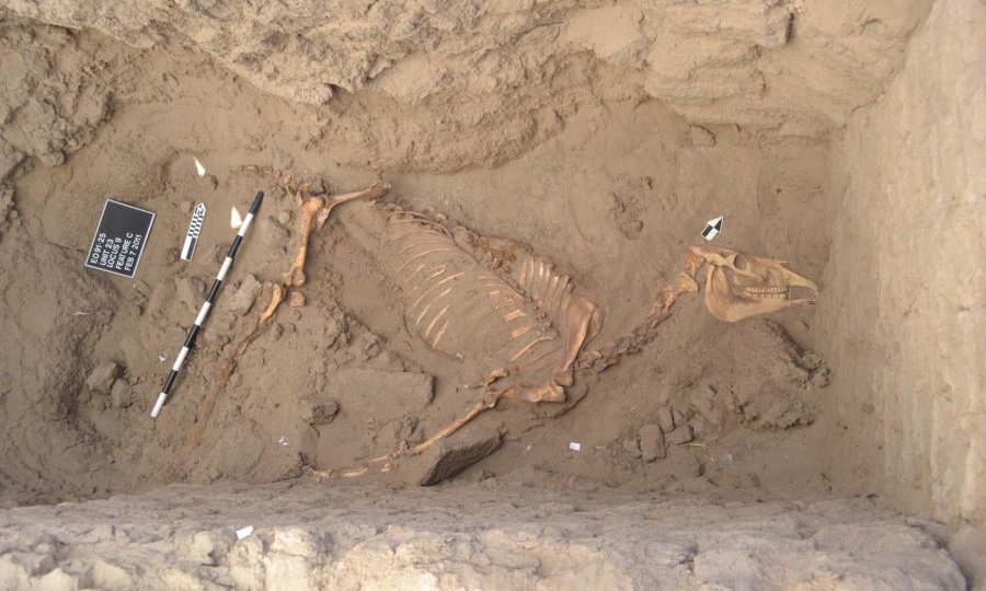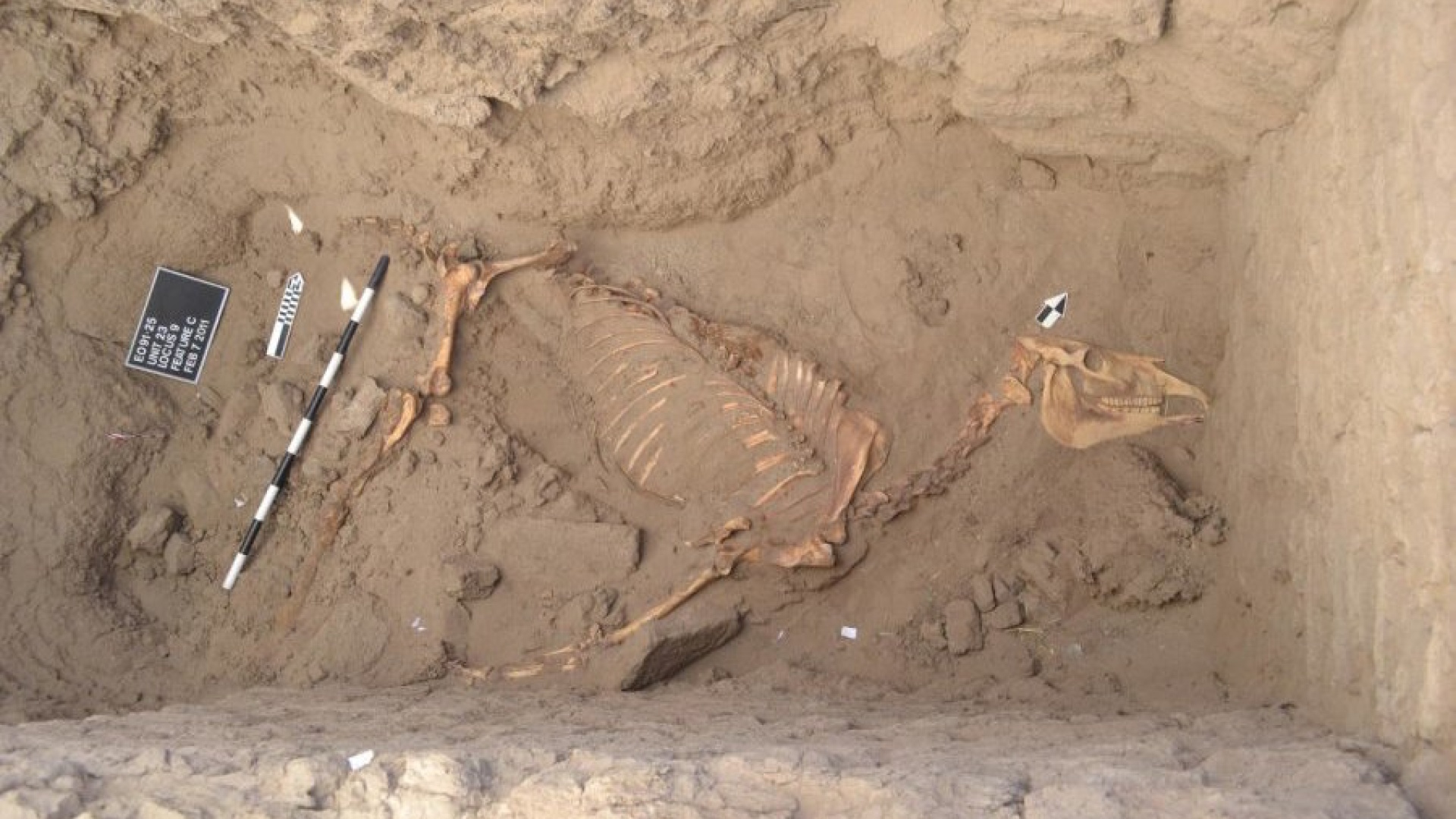 Noin 3 000 vuoden takaisessa haudassa maannut hevonen oli mitä ilmeisimmin kiedottu käärinliinaan, sillä sen kavioissa oli jäänteitä kankaasta. Lisäksi eläin oli mitä ilmeisimmin aseteltu tiettyyn asentoon.