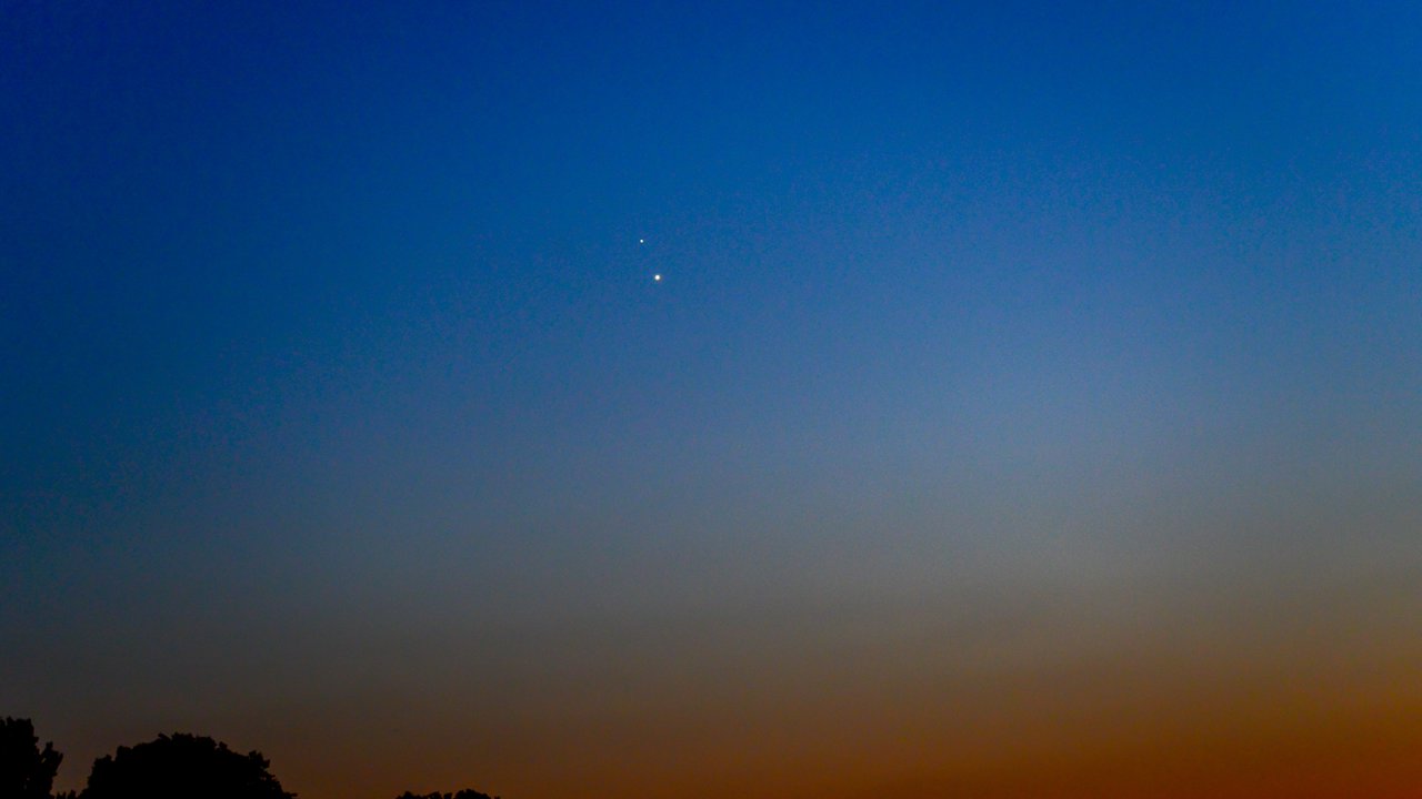 Näinä päivinä Venus ja Jupiter näkyvät taivaalla hyvin lähellä toisiaan. Jos yksinäänkin kumpikin näistä kirkkaista planeetoista näyttää komealta iltataivaalla, ovat ne yhdessä näky, jota jopa taivasta tuntemattomat ihmiset huomatessaan pysähtyvät ihmettelemään. Niiden välinen etäisyys oli pienimmillään eilen, jolloin välimatkaa oli alle kaksi astetta.