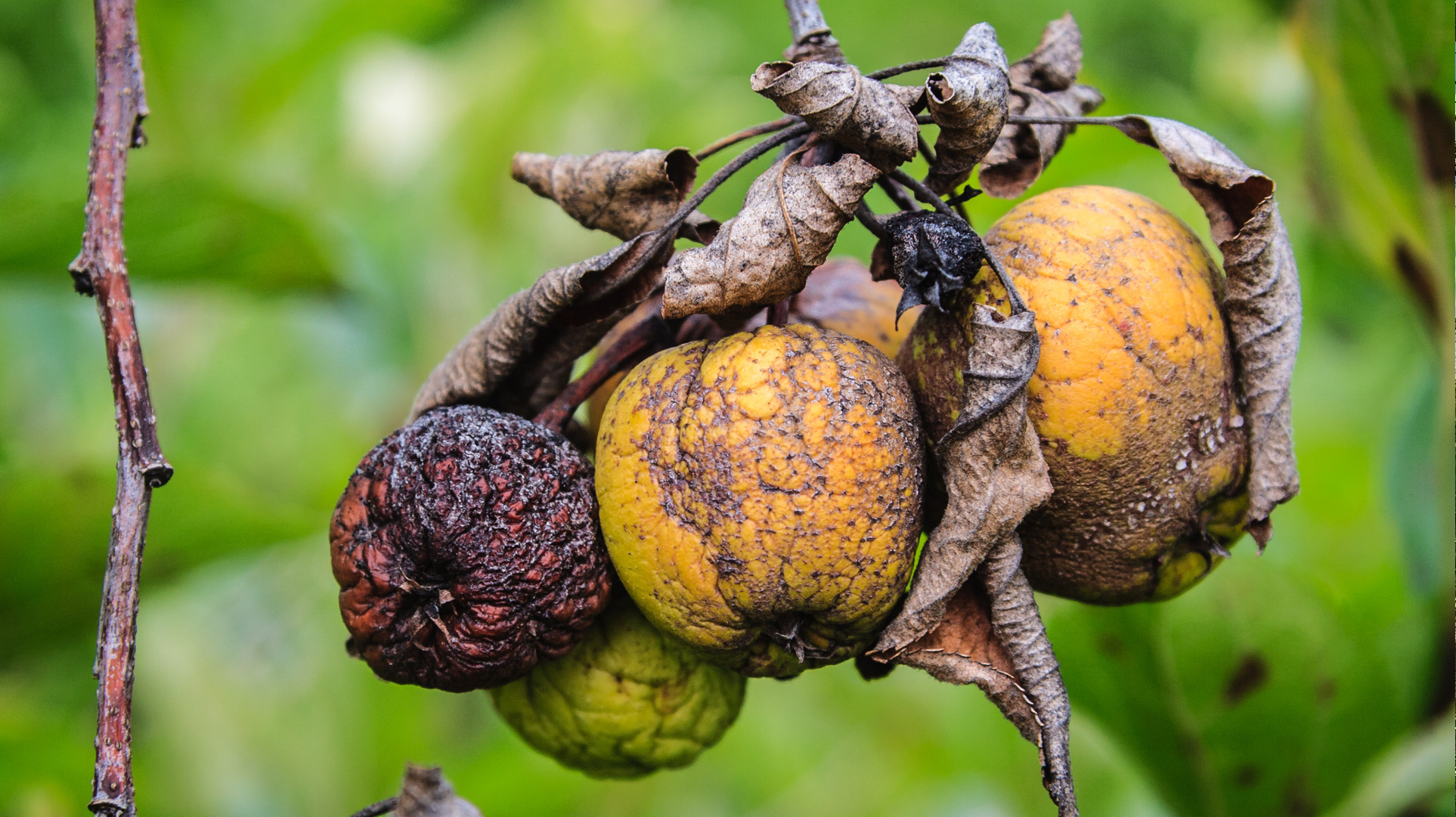 Ja kuten kuva näyttää, maatuminen voi alkaa oikeastaan jo ilmassa – mädäntyneet omenat putoavat pian maahan ja maatuvat siellä.