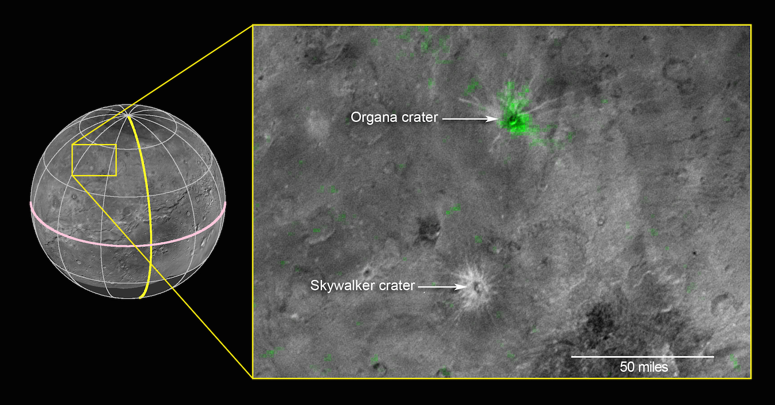 Ammoniakkia todettiin esiintyvän Kharonissa jo vuonna 2000, mutta Organa-kraatterin esiintymä on poikkeuksellinen. Esimerkiksi läheisessä Skywalker-kraatterissa ei ole havaittavissa mitään vastaavaa.