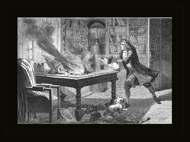 Sir Isaac Newton on tieteenhistorian tunnetuimpia ja arvostetuimpia hahmoja, sillä hän kehitti liikkeen lait ja painovoimalain, mutta myös esimerkiksi peilikaukoputken sekä differentiaali- ja integraalilaskennan. Tieteellisten ansioiden ohella Newtonilla oli hämärämpi puolensa, sillä hän oli kiinnostunut okkultismista ja harrasti alkemiaa. Etenkin myöhemmällä iällä Newtonin mielenterveys horjui, minkä arvellaan ehkä johtuneen altistumisesta haitallisille kemikaaleille. Hänen hiuksistaan otetussa näytteessä on todettu olevan ylen määrin esimerkiksi elohopeaa. Tarinan mukaan iso osa Newtonin alkemistisista kirjoituksista tuhoutui vuonna 1693, kun hänen Diamond-niminen koiransa kaatoi pöydällä olleen kynttilän, joka sytytti paperipinot palamaan. Varmuudella ei kuitenkaan tiedetä, oliko Newtonilla ollenkaan koiraa.