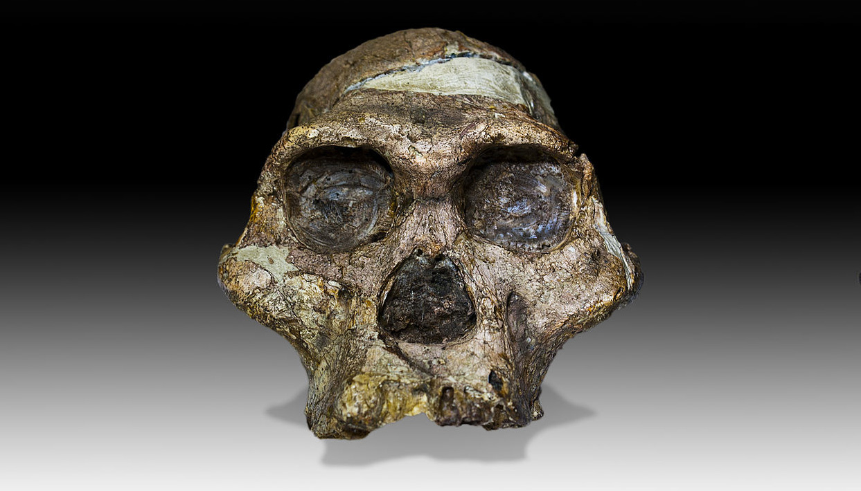 Kuvassa on Transvaalin museossa, Pretoriassa, Etelä-Afrikassa oleva alkuperäinen, täydellinen ihmisen edeltäjän Australopithecus africanus -lajin kallo. Se on noin 2,1 miljoonaa vuotta vanha ja se on nimetty rouva Plesiksi.