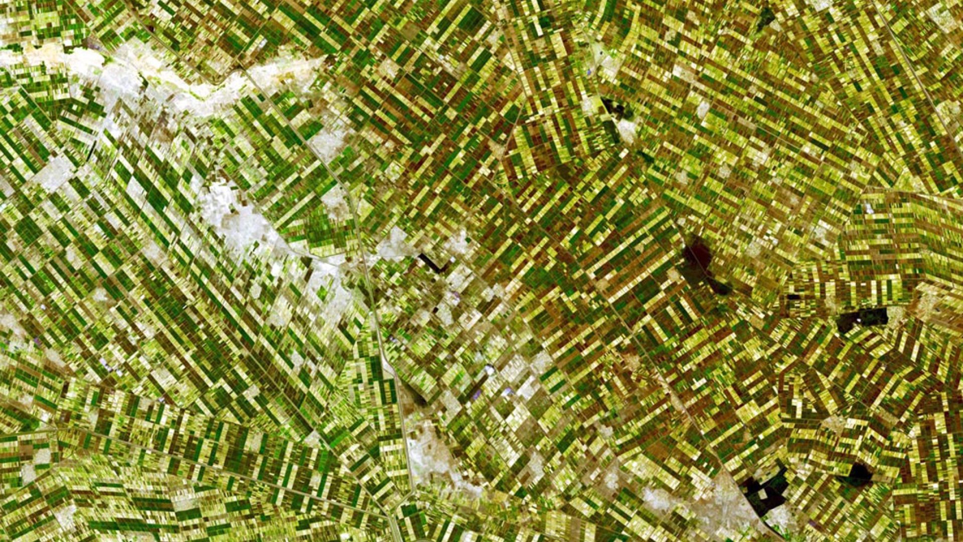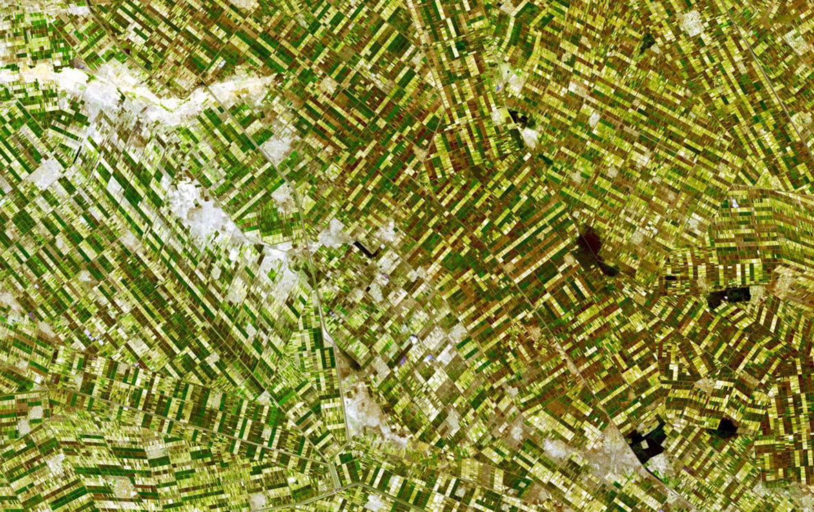 Yhdysvaltain ilmailu- ja avaruushallinnon NASAn Terra-satelliitin kuvassa näkyy Sudanissa, Khartumin eteläpuolella levittäytyvien keinokasteltujen peltojen muodostama tilkkutäkki. Vaaleat alueet ovat kyliä, jotka sijaitsevat Valkoisen ja Sinisen Niilin välissä. Alue kuuluu Al Jazirahin osavaltioon, joka on Sudanin toiseksi suurin.