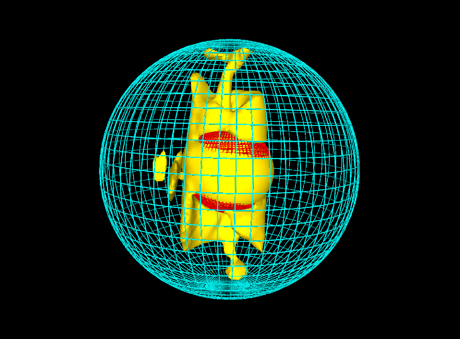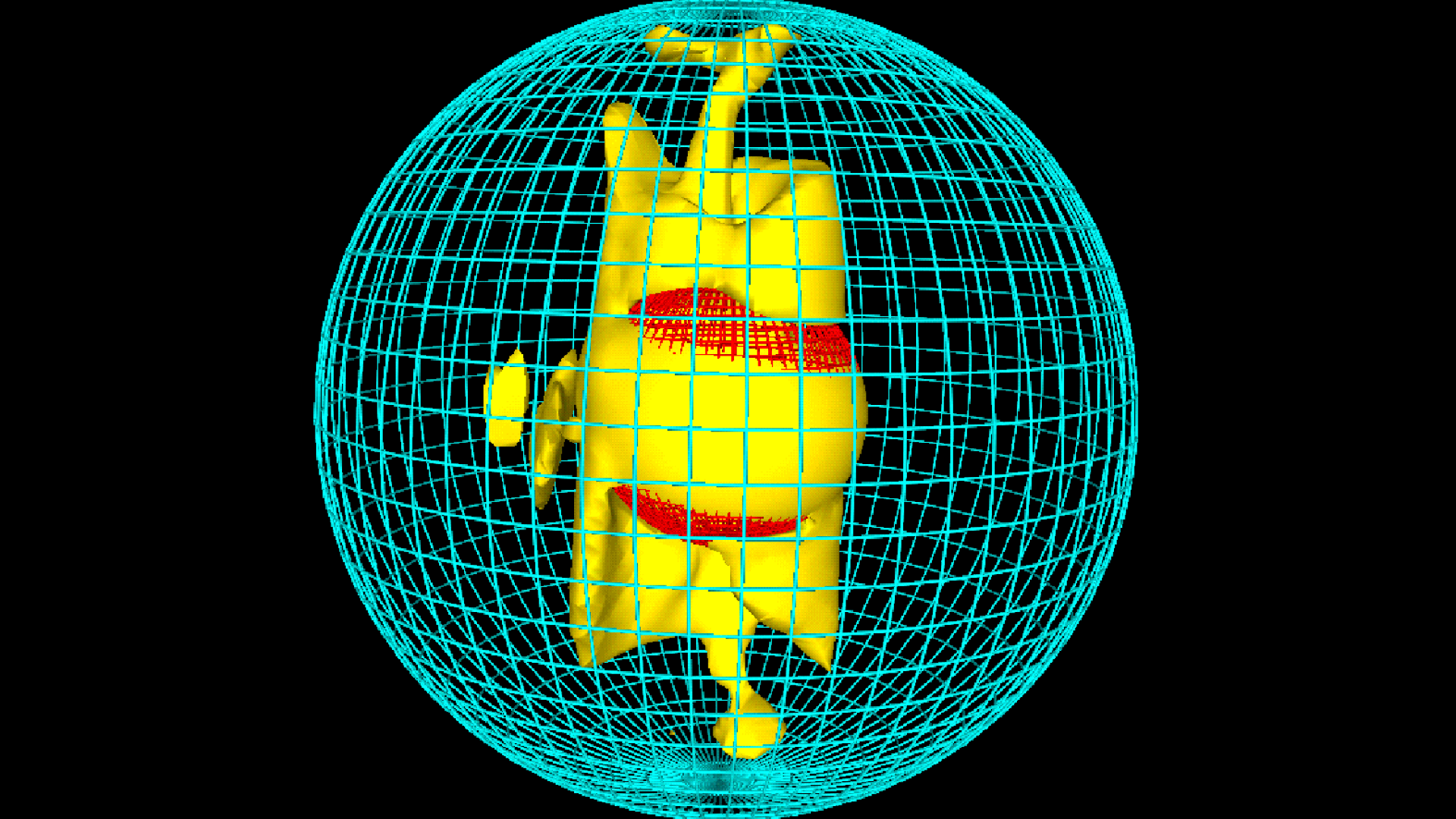 Maan magneettikenttä syntyy syvällä planeettamme sisuksissa osittain sulan ytimen pyörimisliikkeestä. Kun sähköä johtavassa aineessa – Maan ytimen tapauksessa raudassa – tapahtuu virtausta, se saa aikaan magneettikentän. Se puolestaan vaikuttaa sulan raudan virtauksiin ja tästä vuorovaikutuksesta on tuloksena dynamo, joka synnyttää Maan magneettikentän. Pittsburghin superlaskentakeskuksessa ja Los Alamosin kansallisessa laboratoriossa mallinnetussa Maan ytimessä sininen ristikko kuvaa sulan ulkoytimen ja vaipan rajapintaa, punainen ristikko puolestaan sulan ulkoytimen ja kiinteän sisäytimen rajaa. Keltaisella on merkitty sylinterinmuotoinen, sisäydintä sivuava alue, jolla virtaukset ovat kaikkein voimakkaimpia.