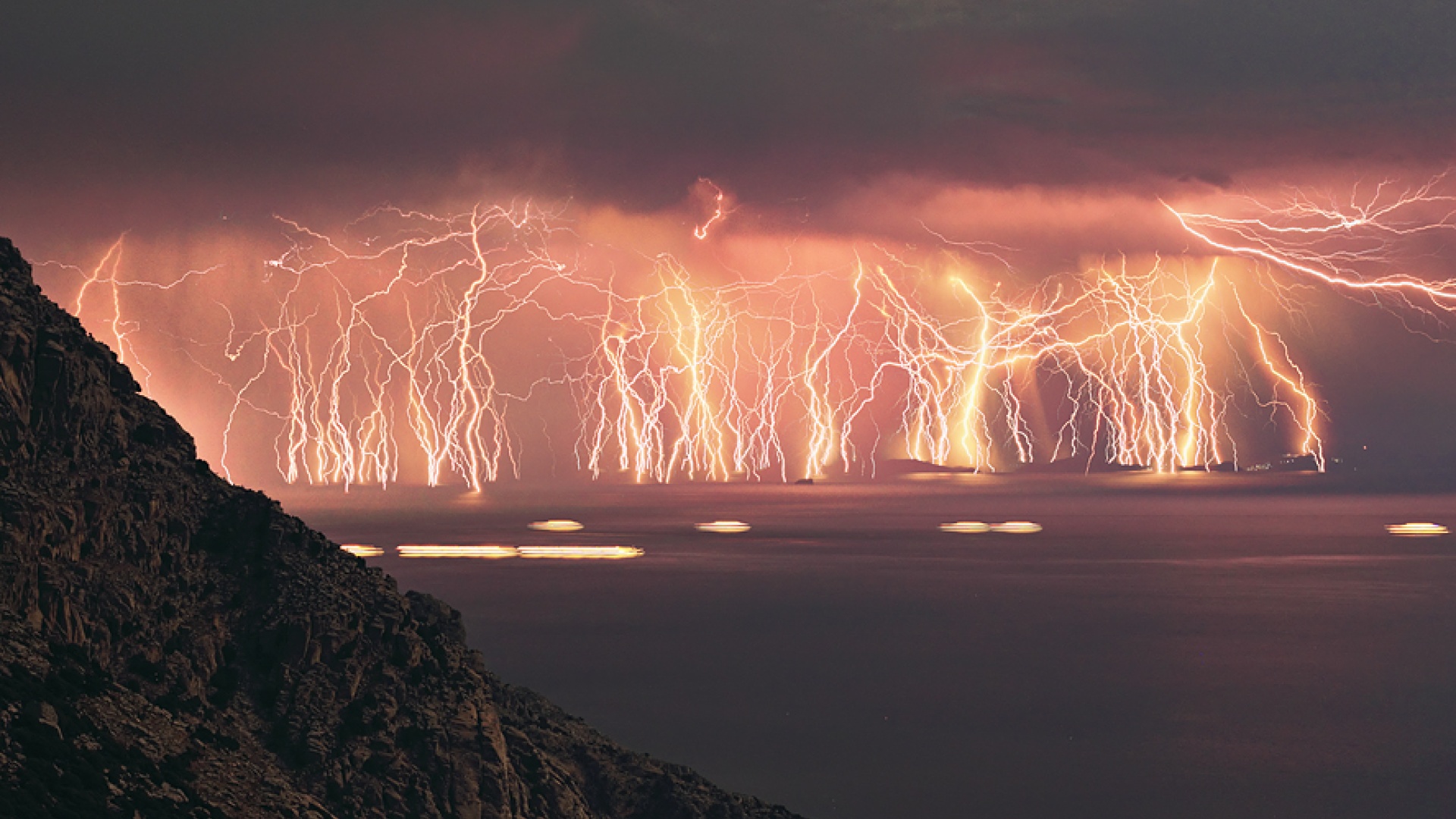 Kreikkalainen valokuvaaja Chris Kotsiopoulos oli kuvaamassa täydellistä kuunpimennystä 15. kesäkuuta 2011 Ikarian saarella Aegeanmerellä lähellä Turkin rajaa, kun pimennyksen kuvaamisen aikaan ukkosmyrsky alkoi kehittyä horisontissa. Niinpä Chris suuntasi kameransa kohti ukkosta, kun se vyöryi lähemmäksi, ja otti 70 valotusajaltaan 20 sekuntia ollutta kuvaa. Näistä hän koosti tämän kuvan, missä on yli sata salamaa, joista suurin osa iski pilvistä maahan.