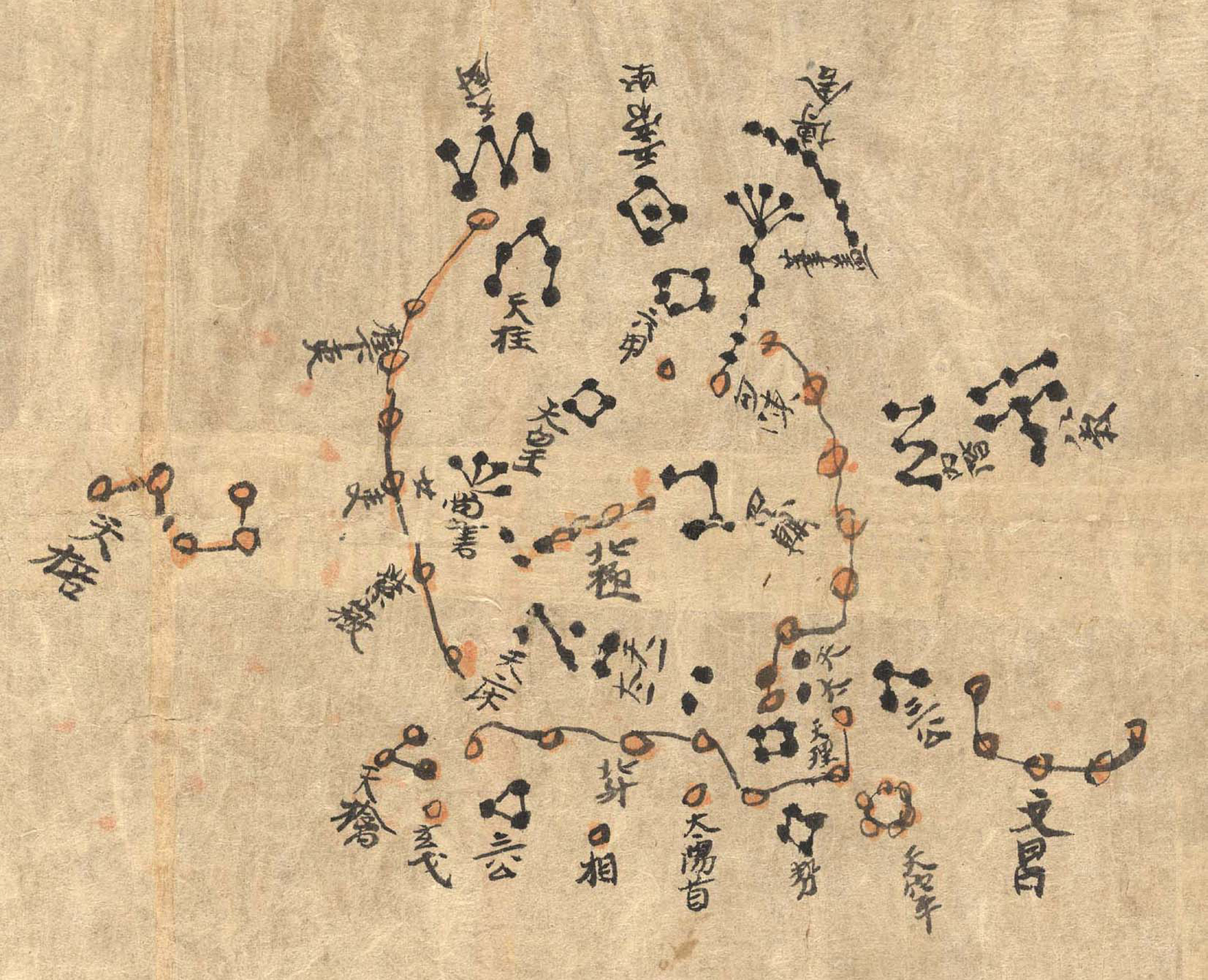 …tai ainakin vanhin säilynyt tarkka esitys tähtien sijainneista pohjoisella taivaalla. Dunghuangin karttana tunnettu kartasto löydettiin vuonna 1907 Kiinassa sijaitsevista Mogao-luolista legendaarisen Silkkitien varrelta. Se oli kaikkiaan 40 000 muun, suurimmaksi osaksi buddhalaisia tekstejä sisältävän dokumentin joukossa. Arvokas arkisto oli ollut piilossa luolissa noin 900 vuoden ajan ja se oli säilynyt kuivan ilmanalan ansiosta. Yksityiskohtainen analyysi tehtiin Jean-Marc Bonnet-Bidaudin johdolla vasta vuonna 2009. Sen mukaan kartasto on laadittu kuudennen vuosisadan loppupuolella ja siinä on yli 1300 tähteä. Kirkkaimpien tähtien sijainnit vastaavat todellisuutta parin asteen tarkkuudella. Eri puolilta maailmaa on löydetty vanhempiakin piirroksia ja kaiverruksia tähdistä, mutta ne ovat pikemminkin taiteellisia mukaelmia tähtitaivaasta. Kuva: British Library