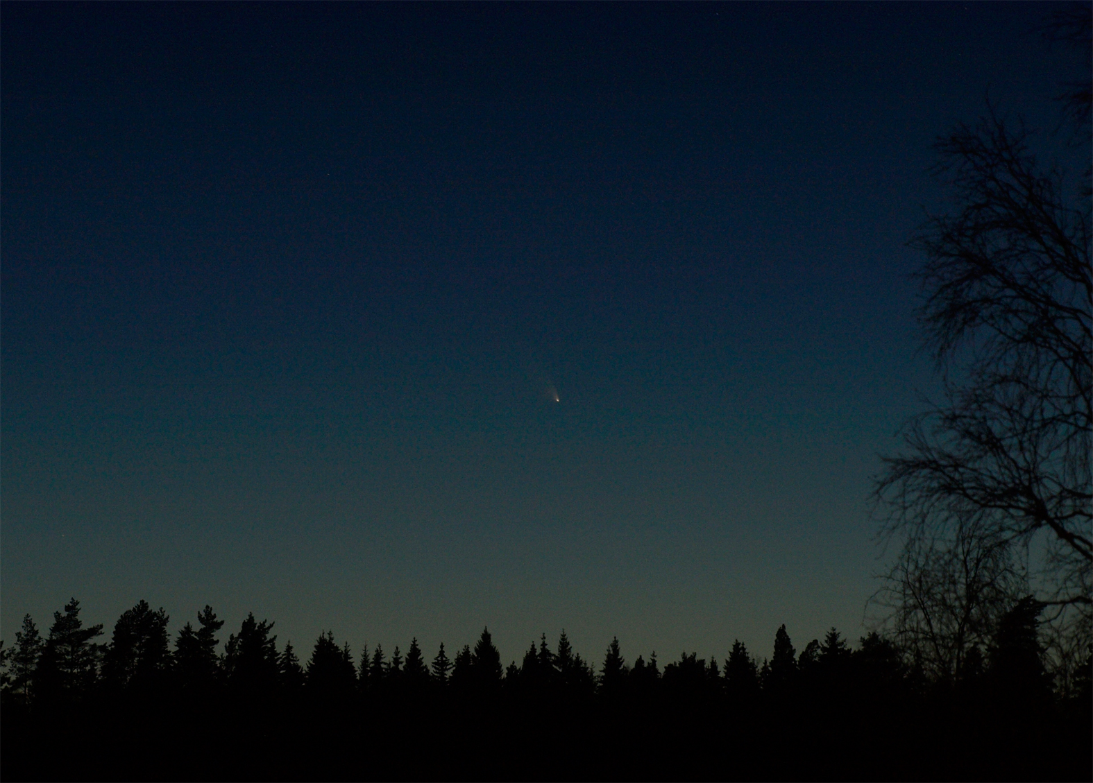 PanSTARRS oli lähimpänä Aurinkoa 10. maaliskuuta, joten sen kirkkaus on hiljalleen hiipumassa. Komeetta näkyy kuitenkin ilta illalta korkeammalla läntisellä taivaalla, joten himmenemisestä huolimatta se tulee paremmin näkyviin. Kovin pitkään komeetta ei kuitenkaan paljain silmin erotu, joten näinä päivinä - kun sääennusteet lupaavat selkeää säätäkin - kannattaa katsastaa läntinen horisontti tunti, puolitoista auringonlaskun jälkeen.