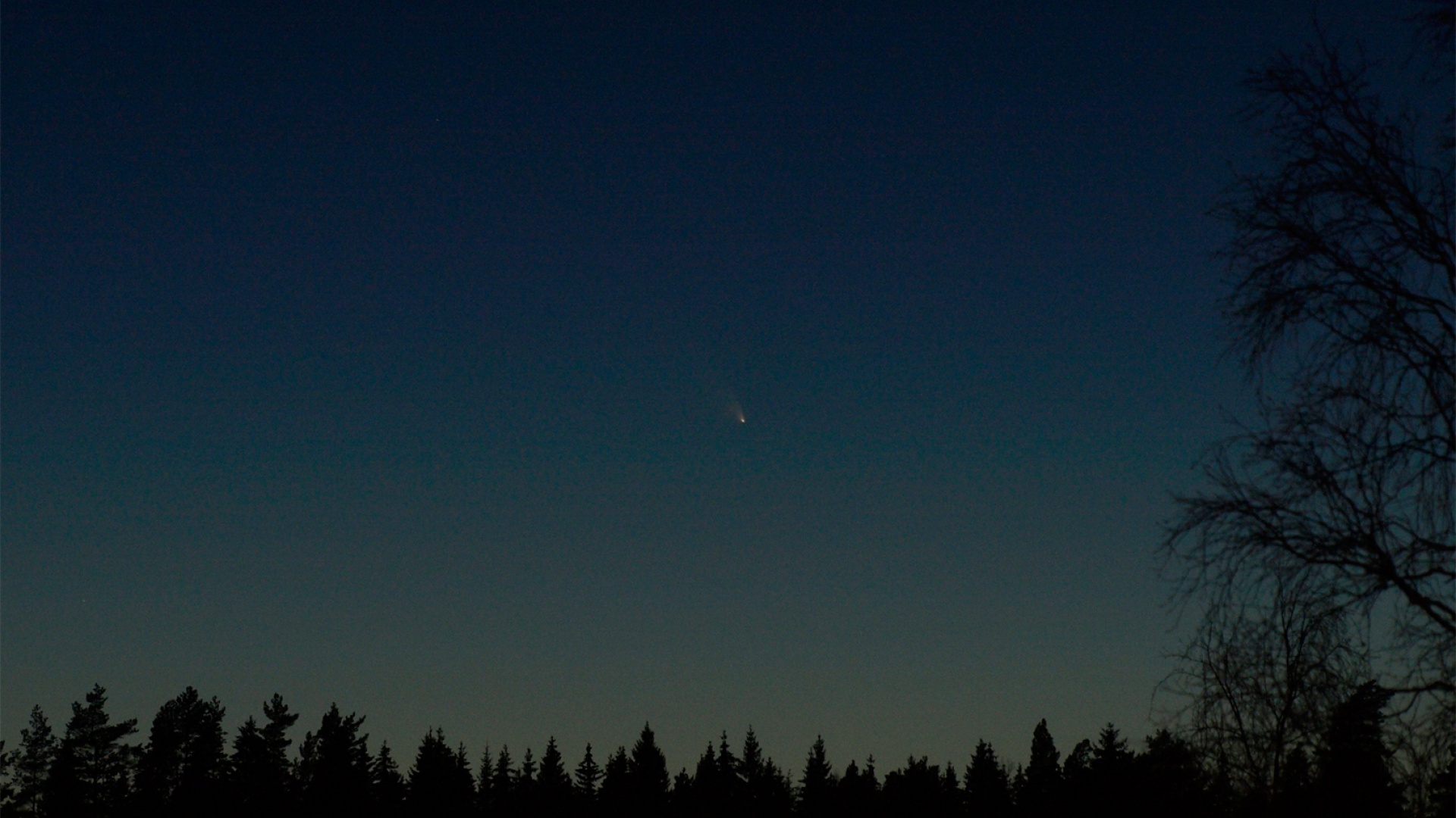 Iltataivaalla yhä ylemmäs nouseva komeetta PanSTARRS on jo melko helppo nähdä paljain silmin. Kiikari on hyvä apuväline kohteen löytämisessä, mutta kun komeetan paikka taivaalla on selvillä, erottuu se myös ilman optisia apuvälineitä. Mitä pimeämmällä paikalla taivaalle tähyää, sitä paremmin PanSTARRS näkyy.