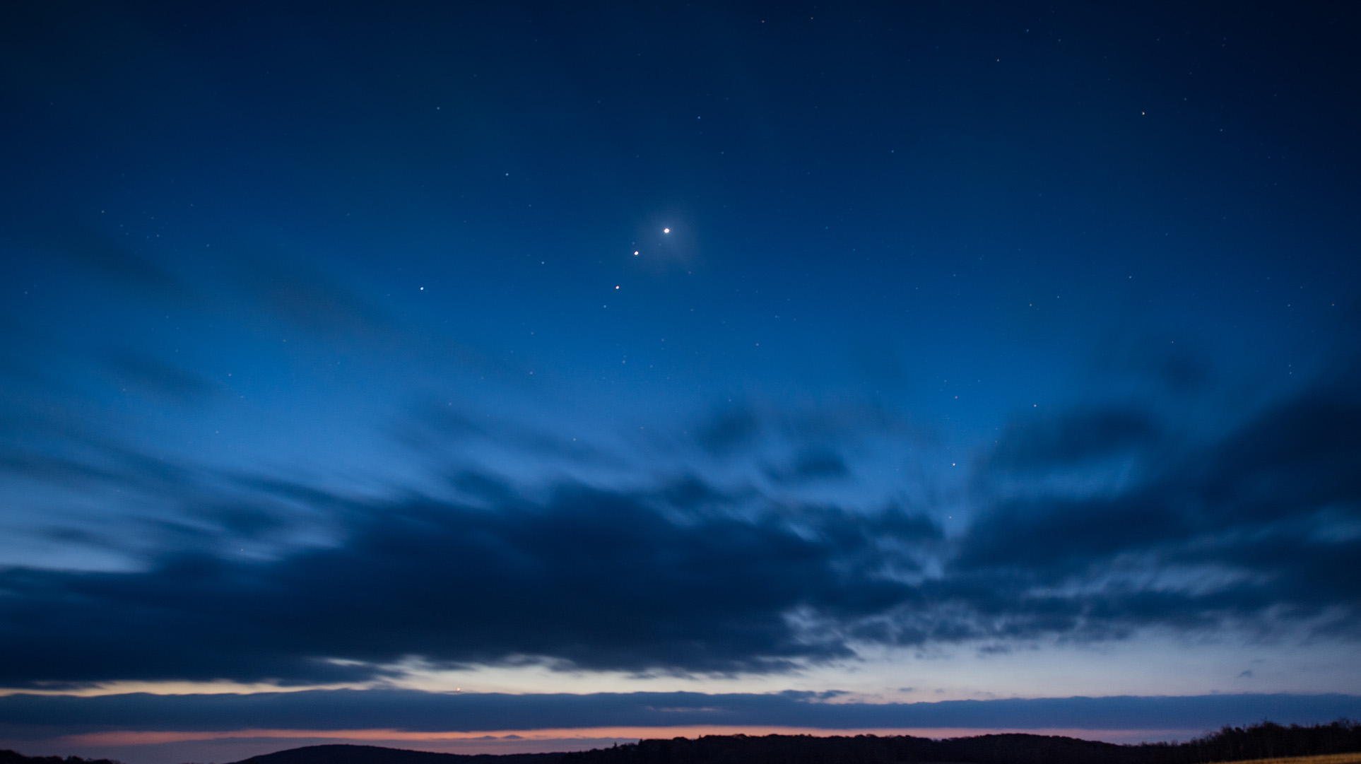 Ne olivat viime viikonloppuna erityisen lähellä toisiaan, jolloin esimerkiksi John Williams sai kuvattua kolmikon taivaalta. Kuvassa on itse asiassa myös Merkurius, joka näkyy (heikosti tosin) kuvassa horisontin päällä heikkona valopisteenä keskiosan vasemmalla puolelta.
