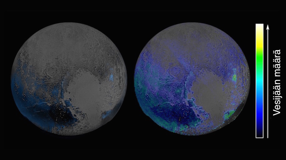Kaukaisella kääpiöplaneetalla on oletettua enemmän vesijäätä. Luotaimen LEISA-instrumentilla (Ralph/Linear Etalon Imaging Spectral Array) tehty infrapunakartoitus osoittaa, että vesijäätä on runsaasti ja laajoilla alueilla.