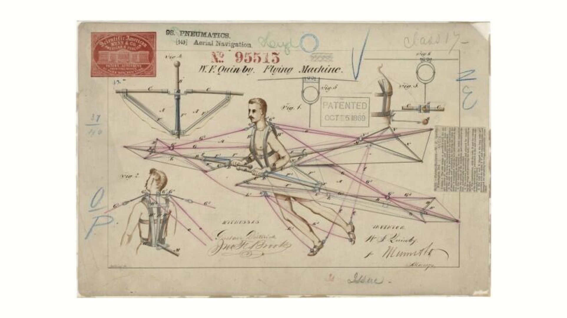 Uusi vuosi tuo monelle mukanaan uudet harrasteet, ja tässä vinkki kaikille lentämisestä ja/tai nikkaroinnista kiinnostuneille: W.F. Quinbyn lentokone vuodelta 1869.