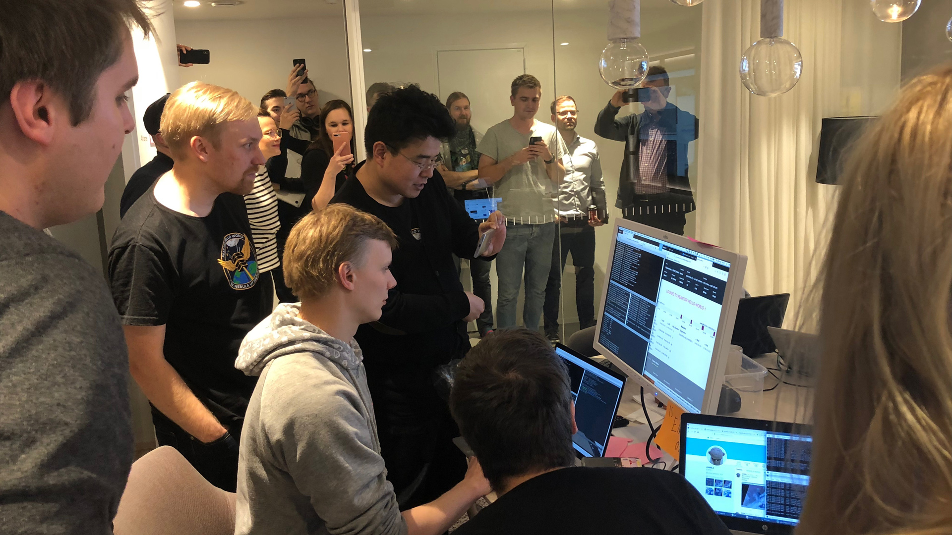 Kun iltapäivällä Hello World lensi ensimmäisen kerran radallaan Suomen päältä, saatiin siihen yhteys myös Reaktor Space Labin omalla maa-asemalla. Tämä yhteys ei ollut enää vain yhdensuuntaista kuuntelua, vaan satelliittiin onnistuttiin myös lähettämään komentoja ja satelliitti vastasi niihin.