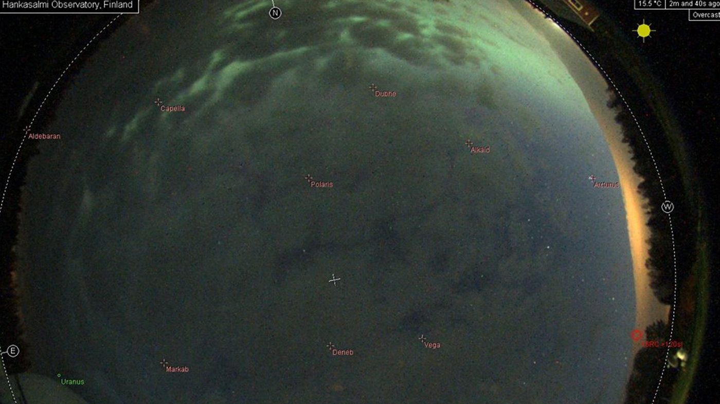 "Viikonloppuna aurinkotuulen magneettikenttä voimistui ja kääntyi sunnuntaina pariin otteeseen äkillisesti etelään. Tämä aiheutti Maassa geomagneettista aktiivisuutta, joka ylsi pariin otteeseen pienen geomagneettisen myrskyn (G1) tasolle. Maanantain vastaisena yönä eteläisessä Suomessa nähtiinkin sitten vähän revontulia. Nyt aurinkotuuli on palannut jokseenkin tavanomaiseksi, joten aktiivisuus lienee tilapäisesti rauhoittumassa."
