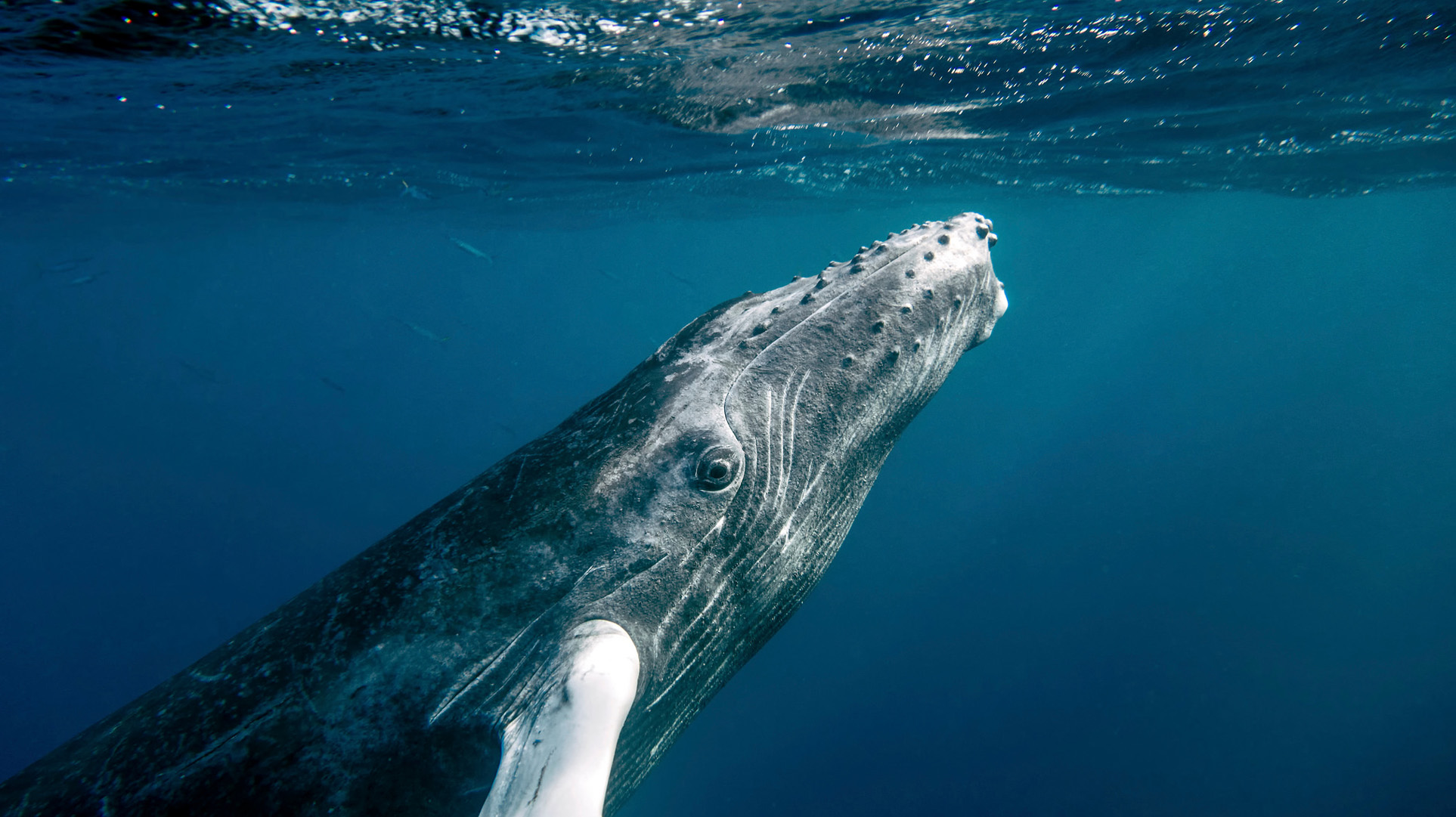Kuvassa oleva valasyksilö on nuori ryhävalas, ja se tutkailee lähellä pintaa mitä kaikkea pinnan päällä näkyykään. Nämä matalia rannikkovesiä suosivat valaat tekevät näin usein, ja olisikin kiva tietää mitä ne pohtivat merenpäällisestä maailmasta.