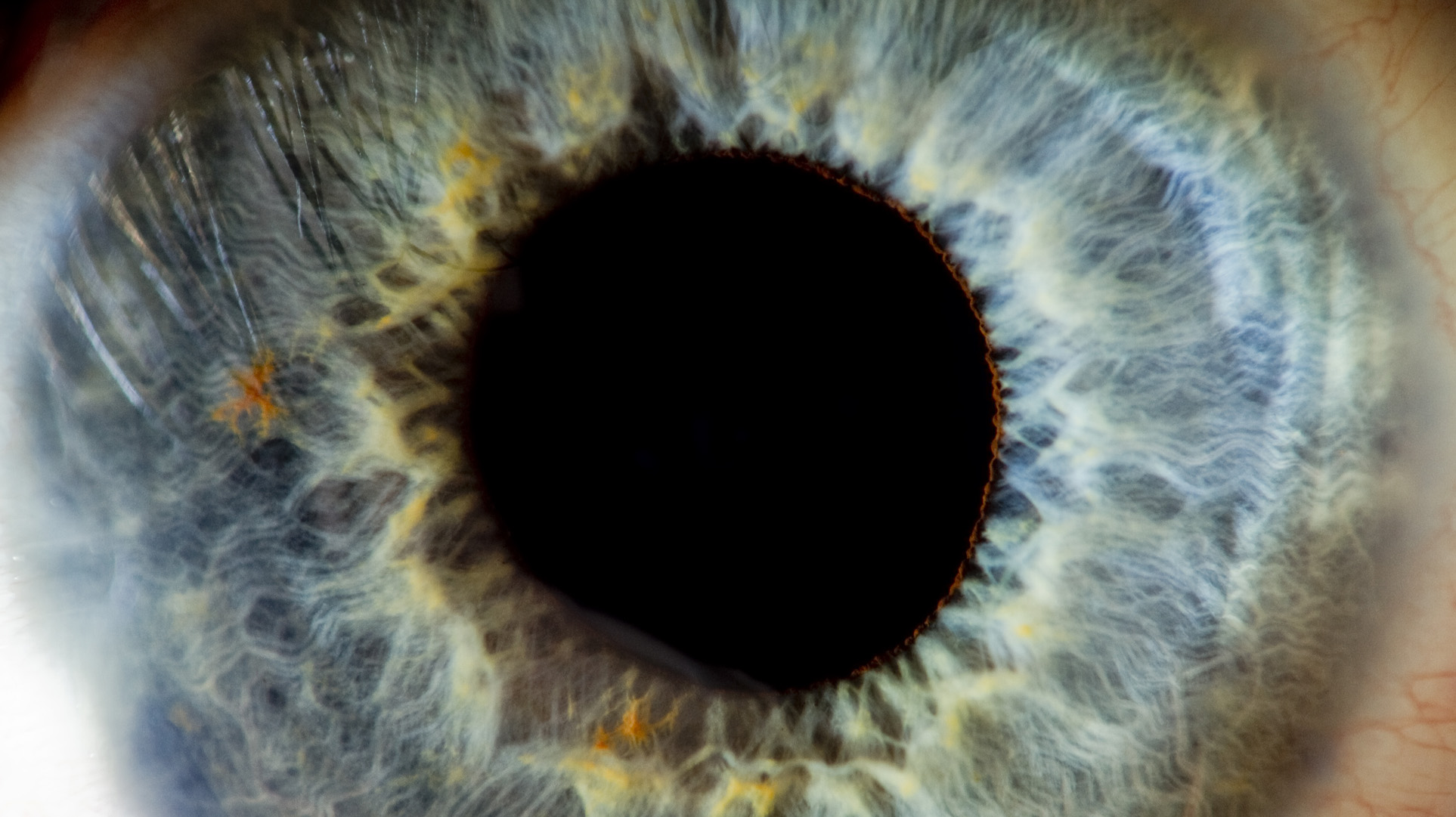Siinä näkyy keskellä hyvin selvästi pupilli, eli mustuainen, jonka ympärillä on värillinen reunus, värikalvo eli iiris.