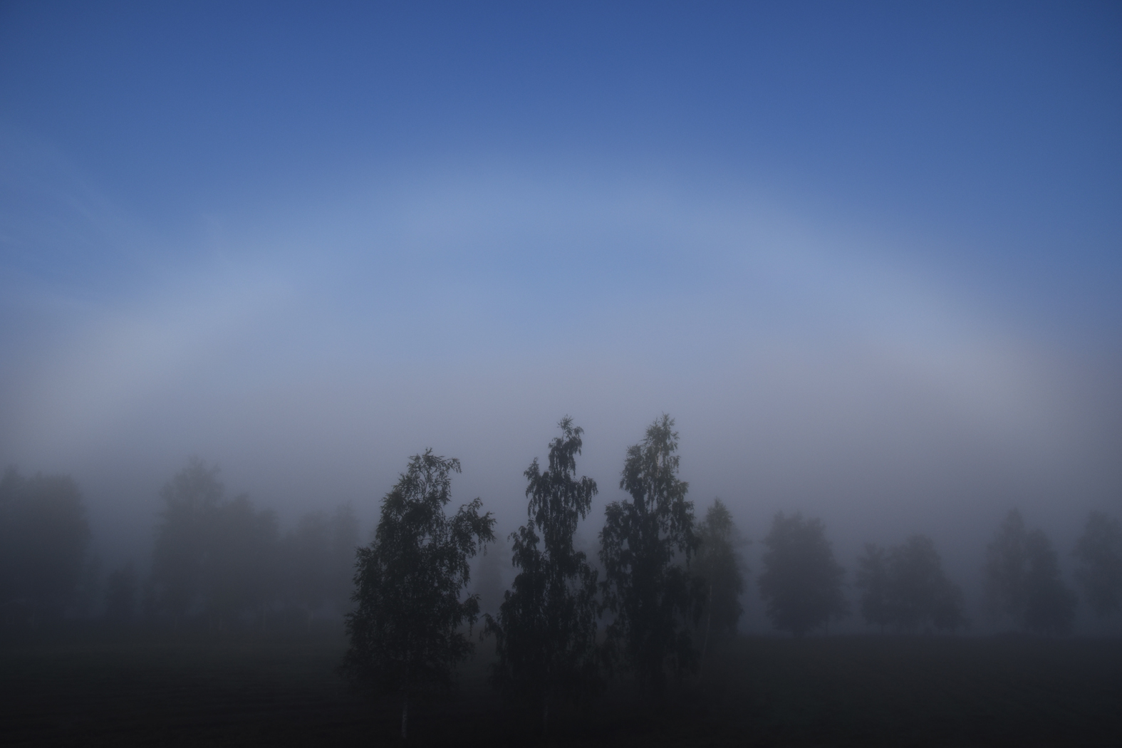 Syksy on aamusumujen aikaa. Siinä missä kesäistä taivasta koristaa usein iltapäiväkuuron väistyessä kirkasvärinen sateenkaari, syysaamuna kannattaa kurkistella taivaalle sumukaaren toivossa.