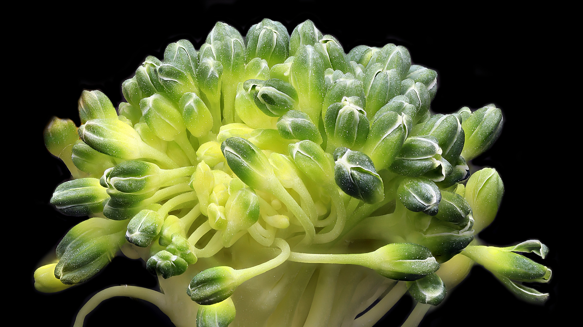 Päivän kuvassa on yksi parsakaalin kukinnon pää suurennettuna, eli kun syömme parsakaalia, nautimme itse asiassa tällaisia luonnollisia taideteoksia.