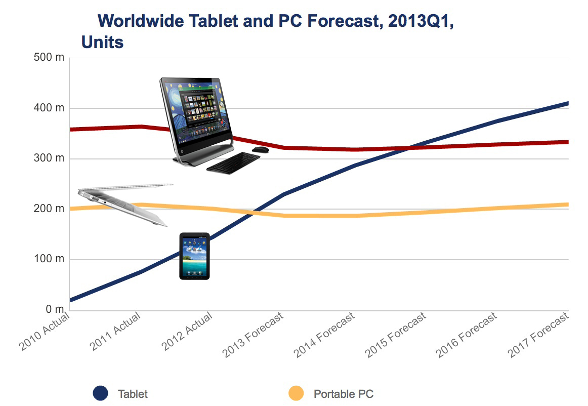 Kehitys ei ole mitenkään yllättävä, mutta nopeus on odotettuakin voimakkaampi. Monille tabletit riittävät mainiosti sähköpostin lukemiseen, surffaamiseen, musiikin- sekä elokuvien katsomiseen sekä moneen muuhun asiaan, mitä aikaisemmin tehtiin vain tietokoneella, joten on loogista, että näiden käytettävyydeltään parempien laitteiden suosio on kova. Tehon lisääntyessä, näyttöjen parantuessa ja sovellusten tullessa yhä paremmiksi, eiviät perinteiset tietokoneet jaksa enää kiinnostaa kuin ns. tehokäyttäjiä.