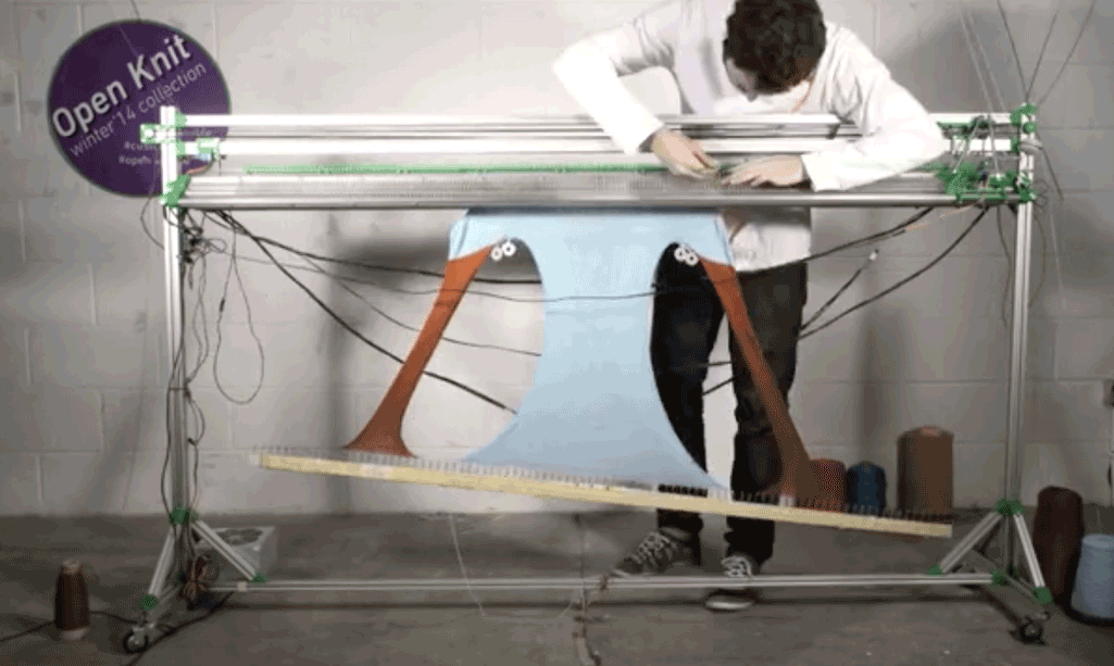 Barcelonassa asuva Gerard Rubio on synnyttänyt OpenKnit -yhteistön, jonka tarkoituksena on jakaa vapaasti tiedostoja, joilla kuka tahansa voi tehdä itselleen omat vaatteensa kudontaprintterillä. Toistaiseksi printteriä ei voi vielä ostaa, vaan se tulee tehdä itse: ohjeet tämän noin 500 euroa maksavan laitteen tekemiseen löytyvät github-yhteisön sivuilla olevasta Rubion ohjepaketista. Siellä on täydellinen lista osista sekä mm. tiedostot osien 3D-tulostamiseen; Rubio lupaa lisää ohjeita, mutta jo nyt näppärä tee-se-itse -askartelija pääsee ohjeilla alkuun. Printterin aivoina on Arduino-pienoistietokone.