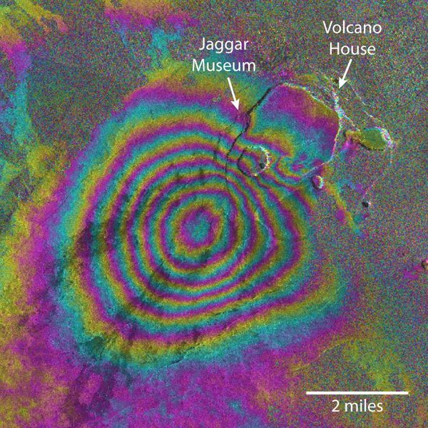 Päivän kuvaPäivän kuvana on Havaijilla olevasta Kilauean tulivuoresta tehty interferogrammi. Se näyttää kuinka maan pinta on noussut tulivuoren kalderan vieressä noin 10 cm viime keväästä alkaen.