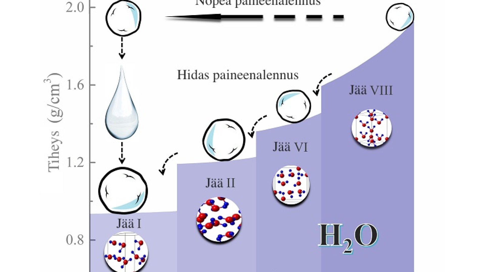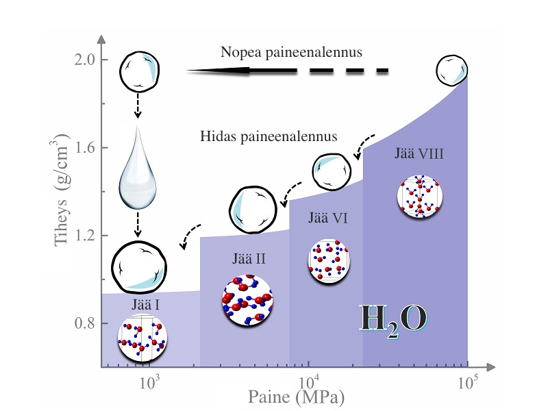Yllättävämpää on, että jäästä tunnetaan 17 erilaisia muotoa ja toisaalta vesi voi esiintyä nesteenä ankarassakin pakkasessa.