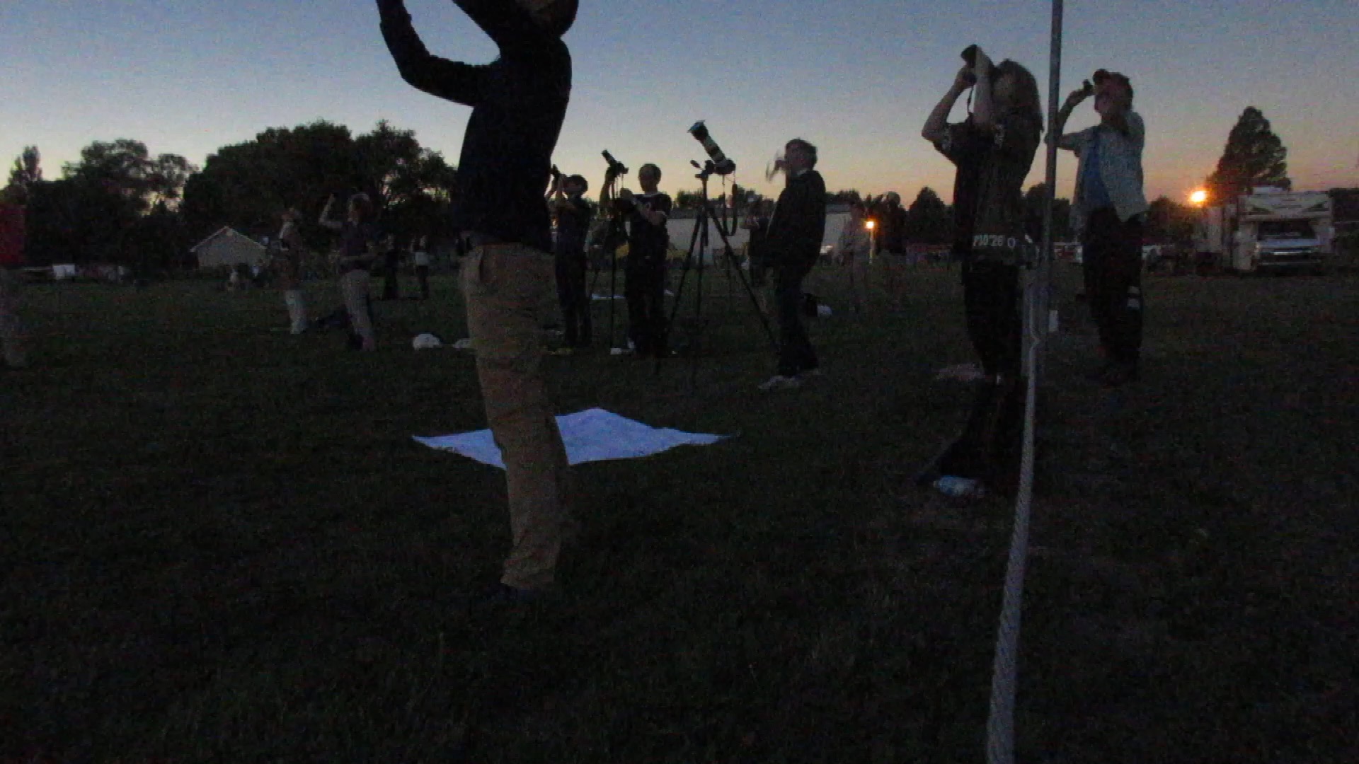 Menanin pohjoispuolella, juuri täsmälleen pimennyksen keskilinjalla, oli sen sijaan tilanne toinen. Yksi Nasan videolähetyksen kameroista oli siellä, ja koska maisemat olivat varsin hienot, oli alueelle pakkaantunut niin aiemmin tulleita telttailijoita ja asuntoautoja kuin myös aamuilla paikalle tulleita havaitsijoita hyvin runsaasti.