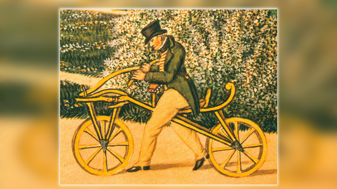 Niinpä Drais mietti vaihtoehtoisia kulkea paikasta toiseen ja kehitti pyöränsä. Ensimmäinen polkupyörä (jos sitä nyt voi kutsua polkupyöräksi) oli puurakenteinen pyöriään myöten, siinä oli nahkainen pitkä istuin ja metallinen ohjaustanko. Sen massa oli noin 22 kilogrammaa, mitä voi pitää varsin vähäisenä.