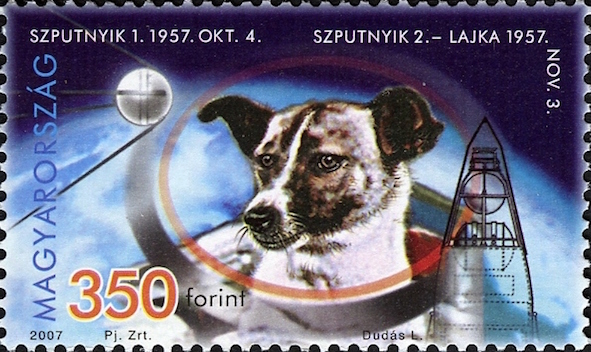 Budapestissä on parhaillaan käynnissä Euroopan tiedejournalistien konferenssi, joten päivän kuvaksi sopii unkarilainen postimerkki tasan 58 vuotta sitten avaruuteen laukaistusta Laika-koirasta.