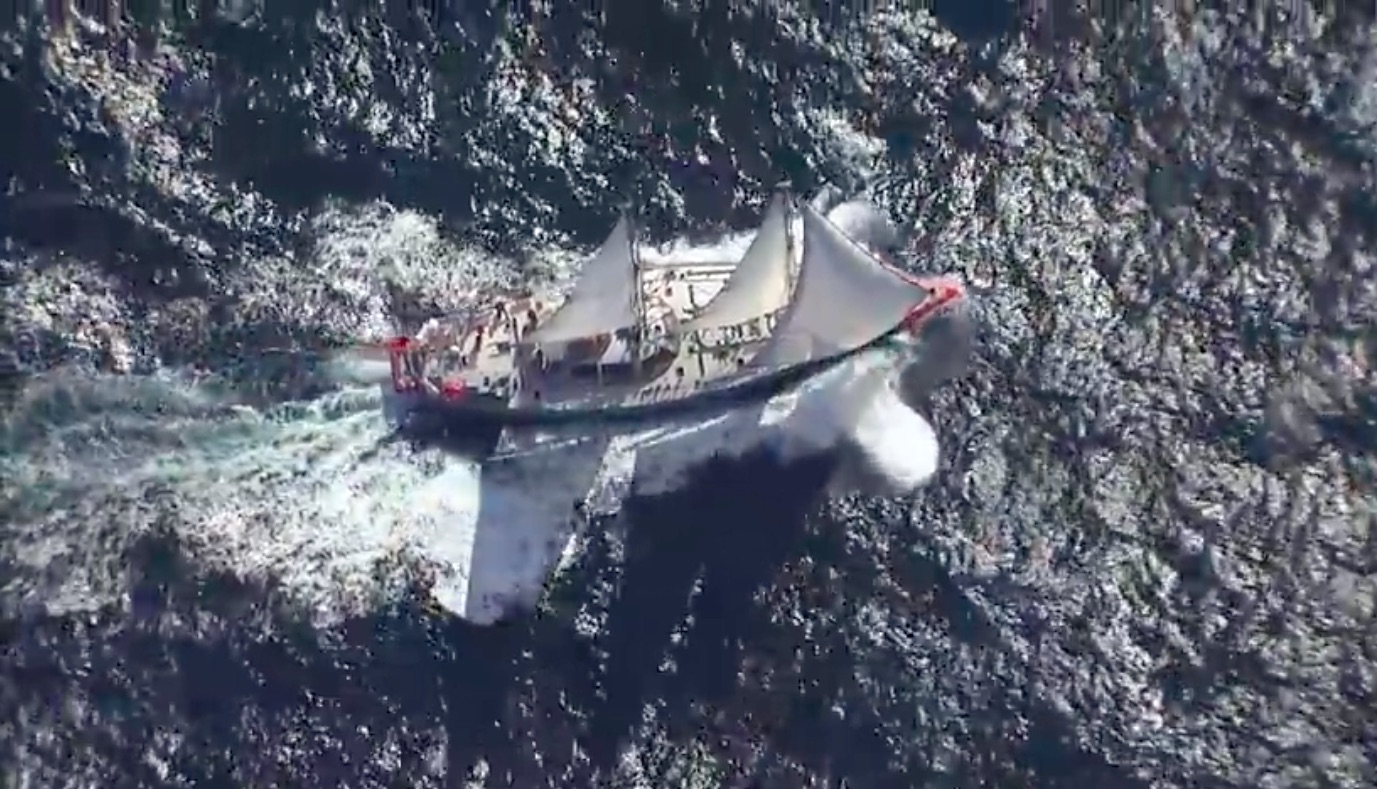 Nyt tämä alumiinirakenteinen alus on Tyynellä valtamerellä olosuhteissa, missä sen jäävahvistuksesta ei ole mitään hyötyä. Alus lähti matkaan toukokuussa ja on juuri nyt Pääsiäissaarilla, mistä matka jatkuu eteenpäin Polynesiaan ja muille Tyynen valtameren korallisaarille, Japaniin, Uuteen Seelantiin, Kiinaan ja lopulta päättyy Kanadaan, Vancouveriin vuonna 2018.