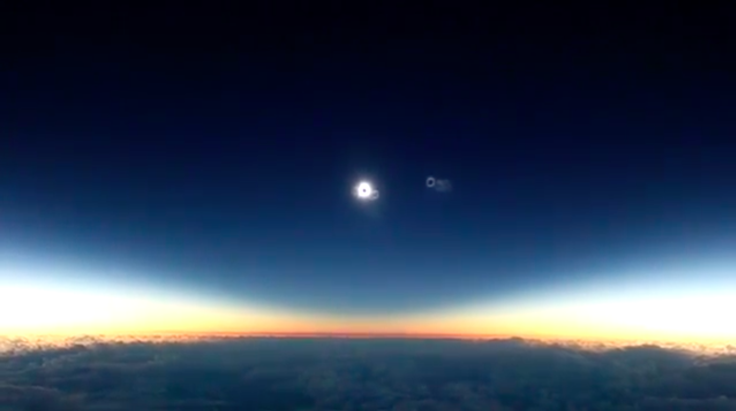Vielä lisää upeaa kuvamateriaalia viime yönä (Suomen aikaa) tapahtuneesta täydellisestä auringonpimennyksestä: tämä video on kuvattu Alaska Airlinesin lennolla 870 Anchorachesta, Alaskasta, Honoluluun Havaijilla.