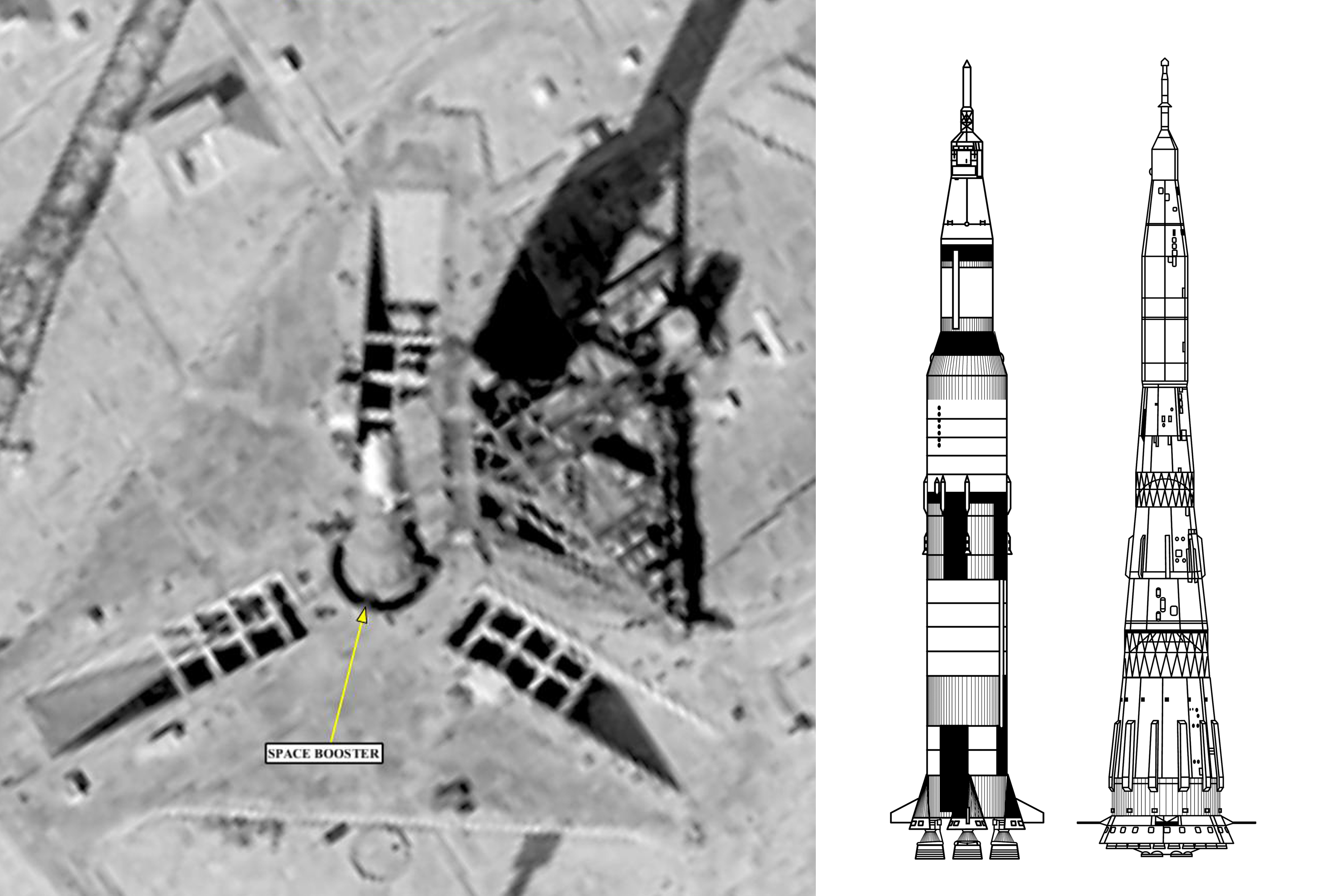 Kaikuja kylmän sodan ja kuukilvan ajoilta: neuvostoliittolainen N1-kantoraketti laukaisualustallaan syyskuussa 1968 Yhdysvaltain KH-8 Gambit -tiedustelusatelliitin kuvaamana. Yli satametrisen kantoraketin oli määrä singota kahden kosmonautin miehittämä alus kohti Kuuta ennen kuin Apollo-ohjelma ehättäisi huipennukseensa, mutta se jäi haaveeksi. N1-raketilla tehtiin neljä laukaisua, jotka kaikki päättyivät epäonnistumiseen. Kun Neil Armstrong ja Buzz Aldrin laskeutuivat Rauhallisuuden mereen heinäkuussa 1969, Neuvostoliitto piilotti koko hankkeen mappi ö:hön ja projektin yksityiskohdat kuualuksineen ja laskeutumismoduuleineen paljastuivat vasta imperiumin luhistuttua. Oikealla on N1-raketin ja Saturn V -kuuraketin kokovertailu.