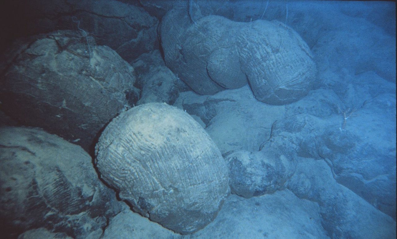 Kun kuuma laava joutuu kosketuksiin "kylmän" veden kanssa, laavavirtauksen pinta jäähtyy nopeasti ja muodostaa ohuen, kiinteän kuoren. Laavaa tulvii kuitenkin koko ajan lisää, mikä kasvattaa pallomaiseksi jähmettyneen laavamuodostelman sisällä vallitsevaa painetta.