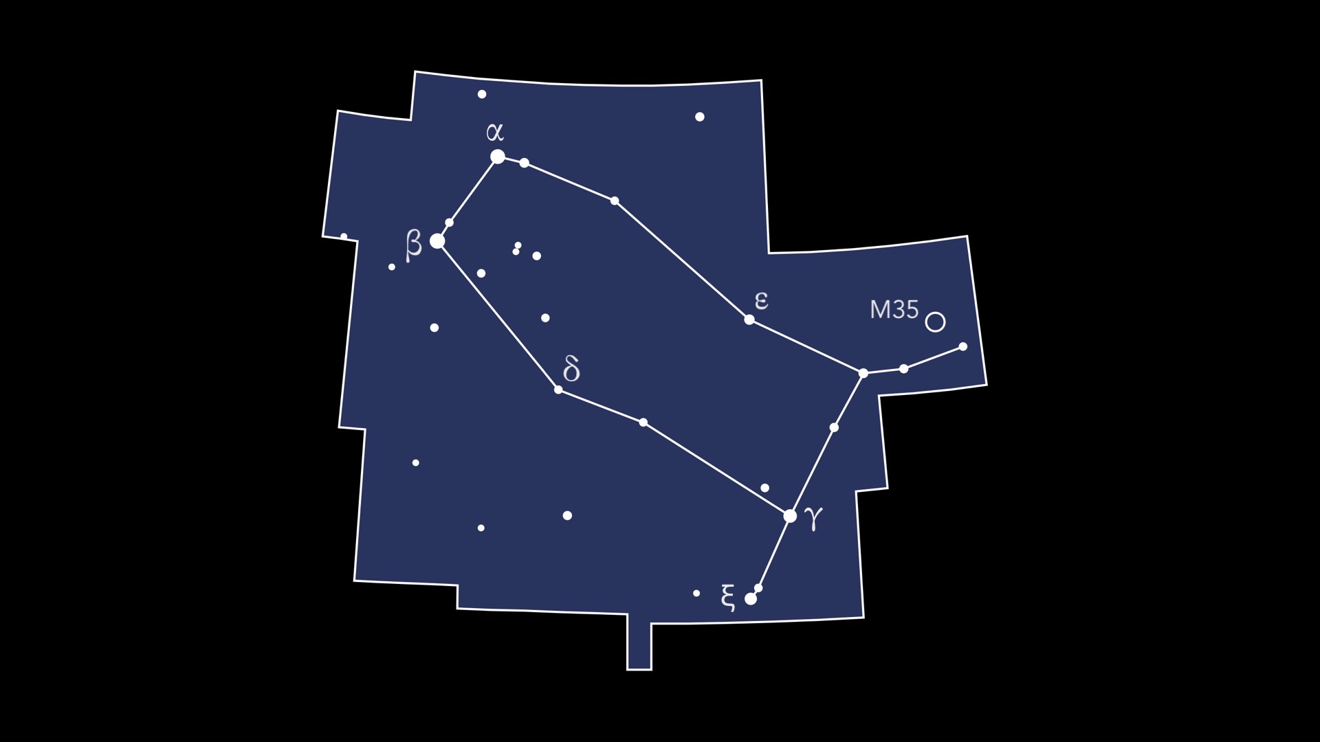 Kaksosten ”jalkojen” juuressa on hieno avoin tähtijoukko, Messier 35. Pilkkopimeällä paikalla se näkyy paljain silminkin, mutta kiikarilla paljon paremmin. Tähtiä rykelmässä on useita satoja, mahdollisesti jopa tuhansia. Joukon laitamilla näkyvistä tähdistä ei pystytä varmuudella sanomaan, kuuluvatko ne joukkoon vai ovatko vain lähistöllä sijaitsevia erillisiä tähtiä.