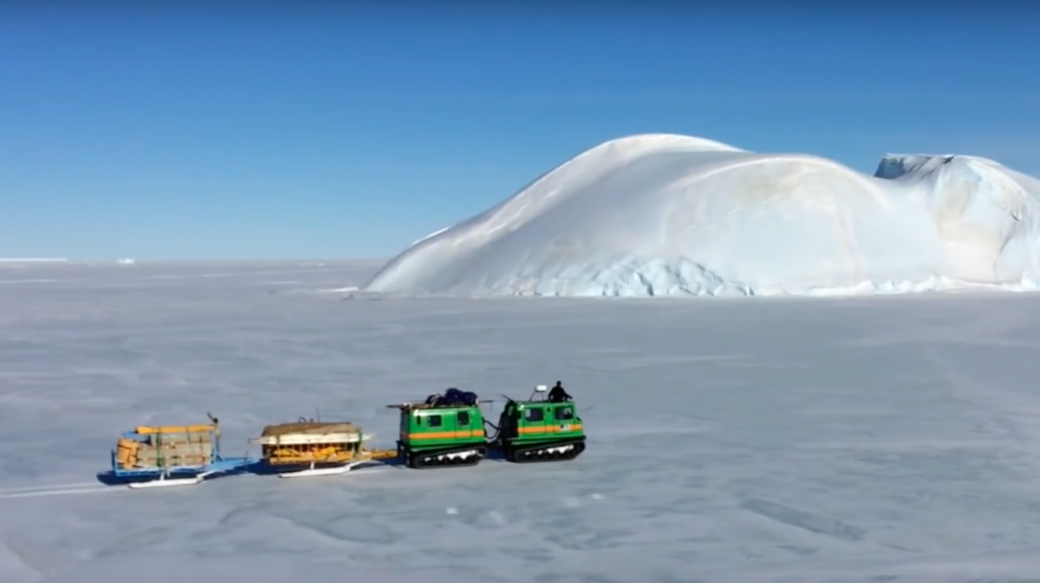 Valastutkijat ovat videolla matkalla ruotsalaistekoisilla Hägglund -telakuorma-autoilla, jotka vetävät kuormakelkkoja perässään. Retkuetta avustaa myös puskutraktori, koska toisinaan eteen sattuu jää- ja lumivalleja, jotka pitää murtaa auki raa'alla voimalla.