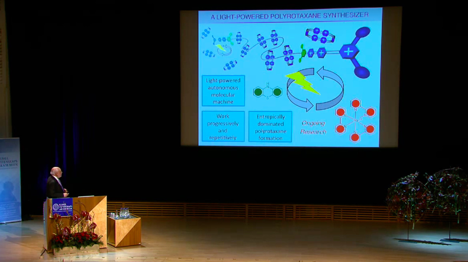 Tässä esitelmässä kemian palkinnon voittaneet Jean-Pierre Sauvage, Sir Fraser Stoddart ja Bernard Feringa kertovat molekyylikoneista; esitelmän tarkka otsikko on "The design and synthesis of molecular machines".